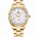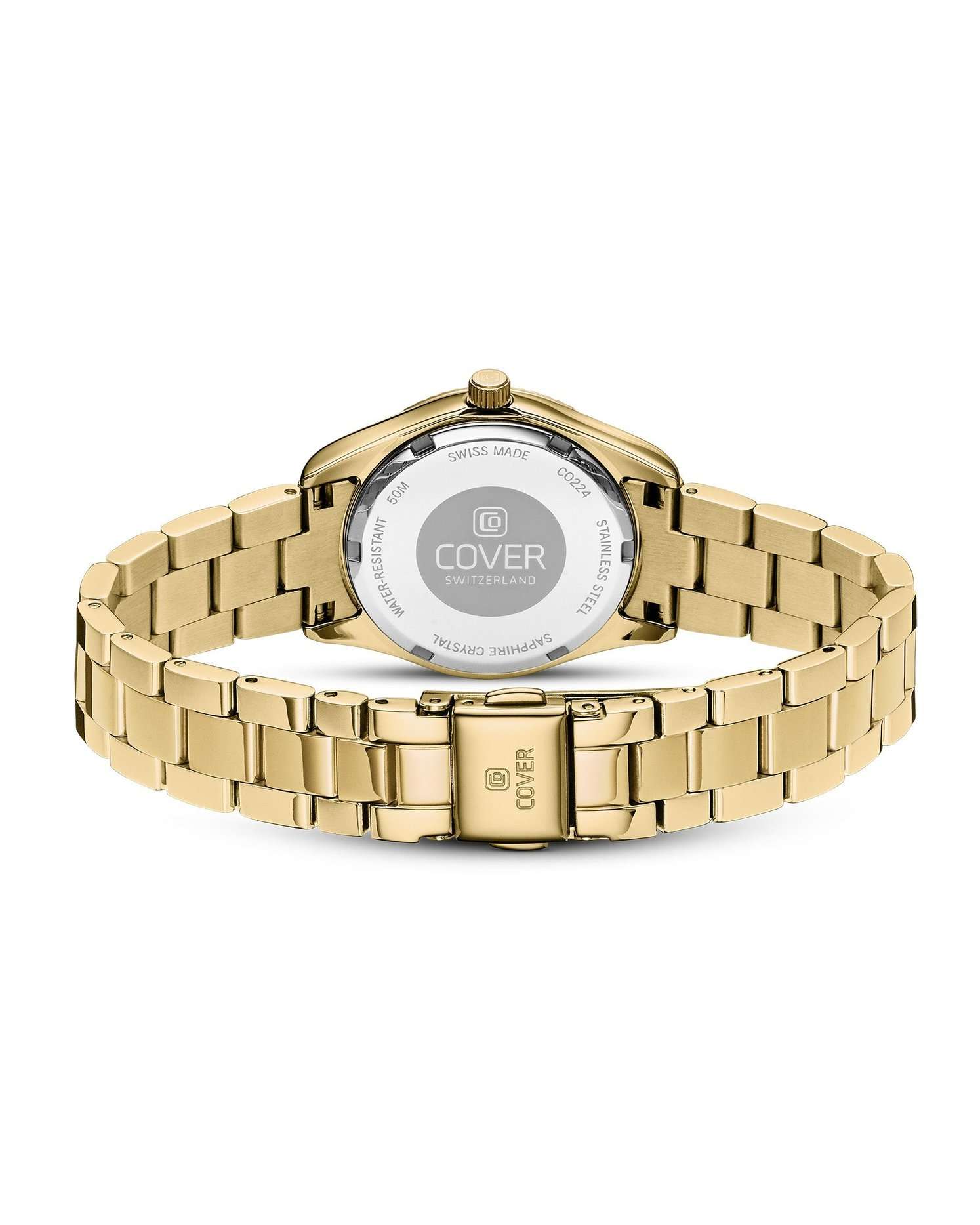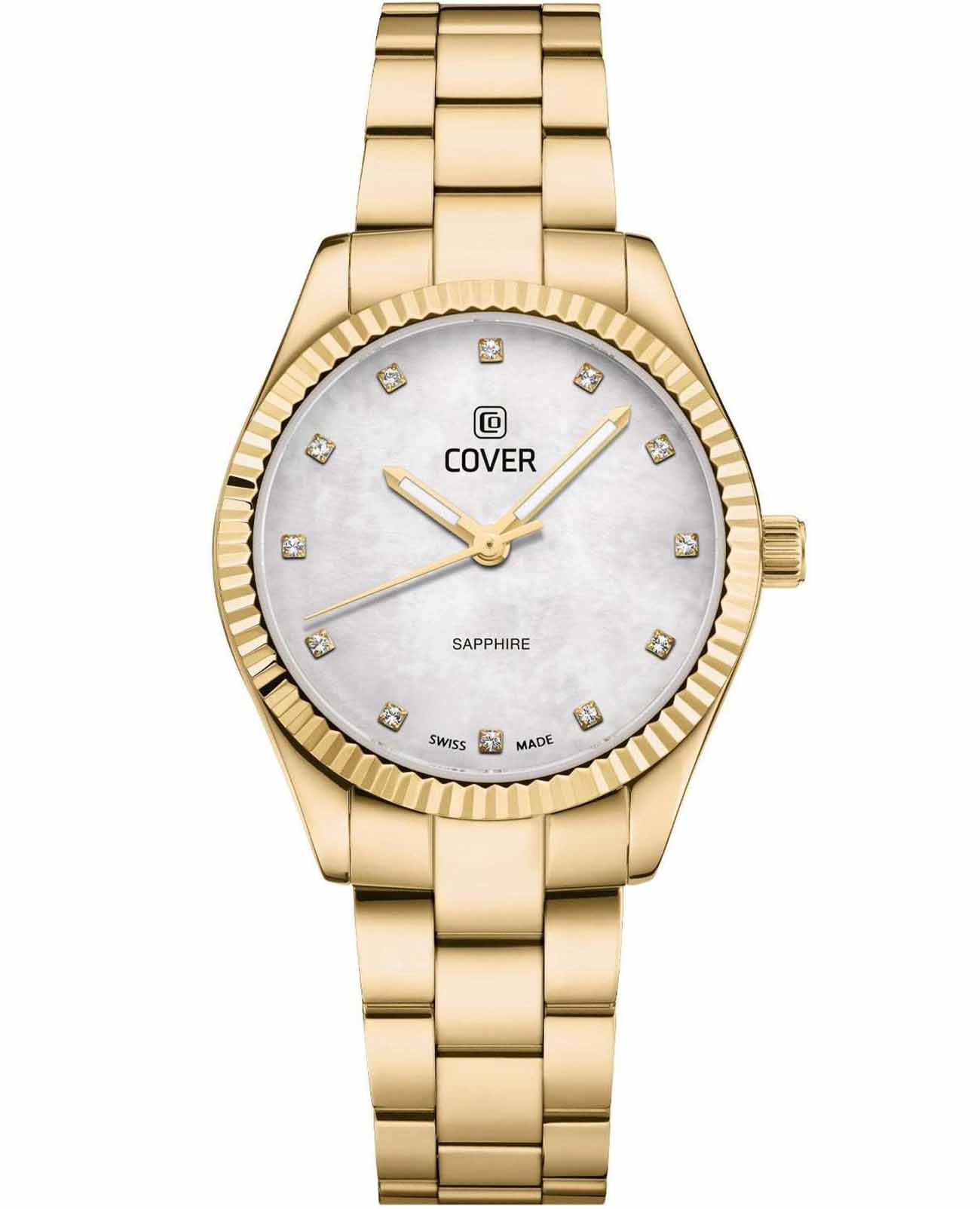 Часы Cover Valentina Mini CO224.05 воплощают в себе вечную элегантность благодаря своему чистому и утонченному дизайну. Корпус и браслет этих швейцарские часы изготовлен из полированной нержавеющей стали с золотистым PVD-покрытиемPVDУльтратонкое покрытие наносится в технике вакуумного напыления, сочетает в себе нитрид титана особой прочности со слоем золота или оксида хрома. Несёт в себе декоративную или защитную функцию.. Они выделяются светящимся белым циферблатом из перламутра. Золотистый рифленый безельБезельВнешний ободок, закрепляющий стекло. В спортивных часах так называется поворотное кольцо с делениями на циферблате, выполняет роль таймера – замеряет отрезки времени на шкале. Неподвижный безель – элемент декора. Однонаправленно вращающийся безель на дайверских часах позволяет фиксировать моменты погружения и выныривания на поверхность. с PVD-покрытиемPVDУльтратонкое покрытие наносится в технике вакуумного напыления, сочетает в себе нитрид титана особой прочности со слоем золота или оксида хрома. Несёт в себе декоративную или защитную функцию. и ослепительные хрустальные часовые метки создают непринужденно элегантный вид а светящиеся стрелки благодаря люминесцентному покрытиюЛюминесцентное покрытиеПозволяет считывать показания времени в темноте. Производители наносят на стрелки, часовые индексы, безель или поверхность циферблата светонакопительный состав, дающий холодное свечение. обеспечивают отличную читаемость и практичность. Эти швейцарские женские часы, идеально подходящие как для делового стиля, так и для повседневного образа, воплощают в себе универсальность и утонченность. Оснащенные устойчивым к царапинам сапфировым стекломСапфировое стеклоПрочный и надёжный материал из кристалла сапфира синтетического происхождения, характеризующийся особой твёрдостью и устойчивостью к царапинам и повреждениям., швейцарским кварцевым механизмом, эти часы соединяют надежность и элегантность. Завершает образ стальной браслет с раскладной застёжкойРаскладная застёжкаТакой тип застёжки используется только на браслетах из металла. Она никогда не раскрывается полностью, происходит разделение на 2 и более частей. Раскладывающая застёжка снизит вероятность потери часов к минимуму., который удобно сидит на запястье и обеспечивает надежную фиксацию. Часы обладают водозащитой уровня 50WR, что делает их подходящими для повседневного использования и активного образа жизни.