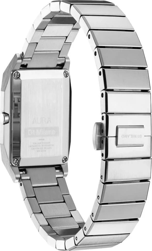 Часы D1 Milano Aura Studio 71 ARBU01 — это уникальные кварцевые часы, которые подчеркнут ваш изысканный стиль. Эти наручные часы с эффектным монохромным дизайном станут выразительным акцентом вашего образа. Изысканный корпус из стали 316L диаметром 23 мм придает часам современный и утонченный вид. Серебристый циферблат, выполненный по технологии Sunray, а серебристые стрелки создают стильный контраст, подчёркивая элегантность модели. Задняя крышка закреплена на 4-х винтах. Стальной браслет с застёжкой «бабочка»Застёжка "бабочка"Такой вид застёжки дополняется предохранителями, помогающими избежать случайного раскрытия браслета. Обладают изящным исполнением. обеспечивает надежность и комфорт в повседневном использовании. Сапфировое стеклоСапфировое стеклоПрочный и надёжный материал из кристалла сапфира синтетического происхождения, характеризующийся особой твёрдостью и устойчивостью к царапинам и повреждениям. с антибликовым покрытиемАнтибликовое покрытиеСлой оксида металла в 0,13-0,3 микрон, благодаря которому стекло часов не бликует и не отражает свет. Антибликовое покрытие уменьшает отражение света в 10 раз, обеспечивая отличную читаемость показателей циферблата. защищает циферблат, а водозащита до 50WR делает эти часы практичным выбором для любых условий. Благодаря калибру Miyota 1L22 часы отличается точностью и надежностью. Эти итальянские часы представляют собой идеальное сочетание традиционного мастерства и инновационного подхода, воплощая в себе новый взгляд на классическую элегантность.