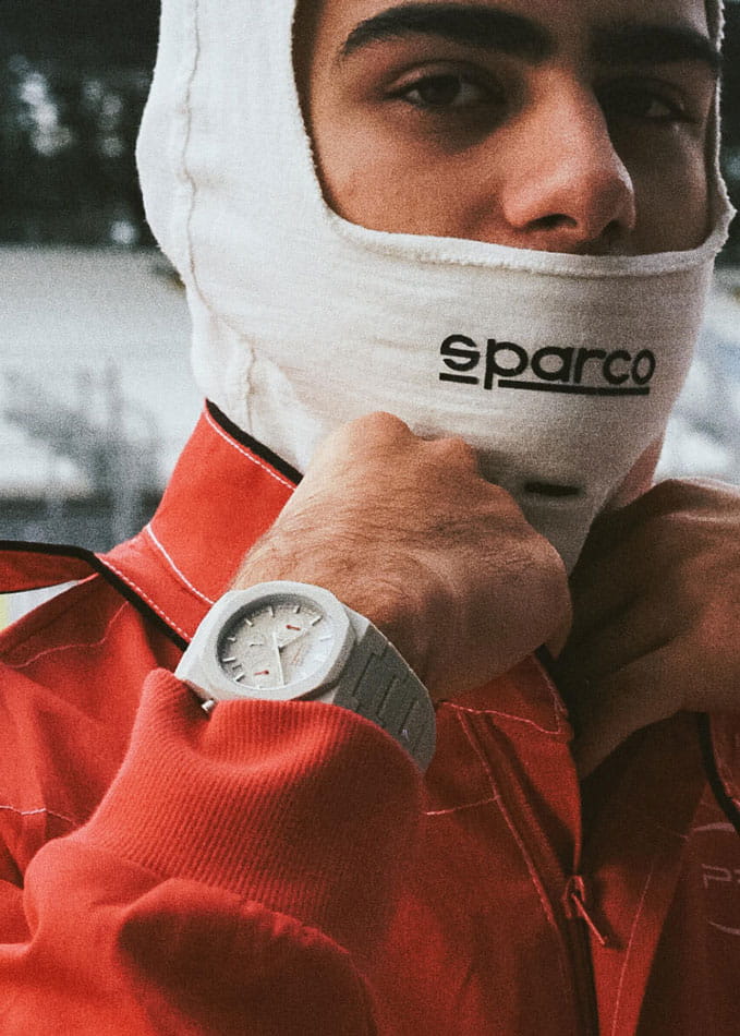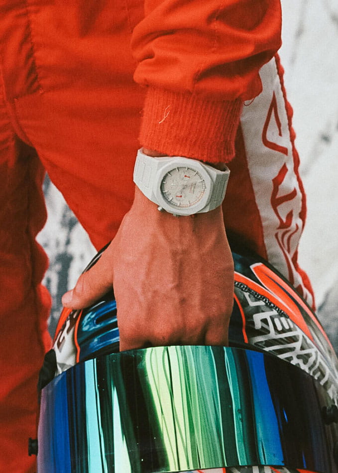 Часы D1 Milano x Prema PHBJPR — это элегантные кварцевые часы, которые впечатляют своим функциональным дизайном. Высокая надежность превращает эти часы в незаменимый аксессуар на каждый день. Модель оснащена хронографомХронографФункция позволяет измерять отрезки времени с особой точностью: часы, минуты, секунды. Верным признаком хронографа является наличие на циферблате 3 дополнительных окошек-счётчиков., секундомеромСекундомерСекундоме́р — прибор, способный измерять интервалы времени с точностью до долей секунды. и циферблатом, защищенным минеральным стекломМинеральное стеклоМинеральное стекло представляет собой искусственно выращенный минерал кварца. Такое стекло отличается особой устойчивостью к повреждениям и царапинам. Уступает по некоторым качествам сапфировому стеклу.  с антибликовым покрытиемАнтибликовое покрытиеСлой оксида металла в 0,13-0,3 микрон, благодаря которому стекло часов не бликует и не отражает свет. Антибликовое покрытие уменьшает отражение света в 10 раз, обеспечивая отличную читаемость показателей циферблата.. Изысканный корпус из поликарбоната с покрытием Софт-Тач. На циферблате расположены накладные метки в виде штрихов и три дополнительных циферблата, а также окошко календаря в положении между отметками 4 и 5 часов. Пластиковый браслет с застежкой «бабочка»Застёжка "бабочка"Такой вид застёжки дополняется предохранителями, помогающими избежать случайного раскрытия браслета. Обладают изящным исполнением. . Стальная задняя крышка этих часов крепится на 4-х винтах. Водонепроницаемость до 50 метров делает эти часы идеальным выбором для повседневного использования. Лимитированная серия — 300 экземпляров.