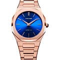 Женские наручные часы D1 Milano UTBL12 из коллекции Ultra Thin сочетают в себе элегантный дизайн и современные технологии. Модель обладает круглым корпусом диаметром 34 мм, изготовленным из высококачественной нержавеющей стали 316L с PVD-покрытиемPVDУльтратонкое покрытие наносится в технике вакуумного напыления, сочетает в себе нитрид титана особой прочности со слоем золота или оксида хрома. Несёт в себе декоративную или защитную функцию.. Толщина ультратонкого корпуса составляет всего 6 мм, делая аксессуар легким и удобным для повседневного использования. Браслет также выполнен из нержавеющей стали с PVD-покрытиемPVDУльтратонкое покрытие наносится в технике вакуумного напыления, сочетает в себе нитрид титана особой прочности со слоем золота или оксида хрома. Несёт в себе декоративную или защитную функцию. и с раскладной застежкойРаскладной замокДанный вариант застежки используется только на часах с металлическим браслетом. Отличительная особенность такого крепления в том, что длина браслета становится универсальной и вы можете самостоятельно отрегулировать нужный вам размер – застежка просто двигается по браслету часов., гарантирующей комфортное ношение и безопасность. Синий циферблат с эффектом Sunray украшен метками в виде штрихов и оснащен стрелочным механизмом, который подчеркивает элегантность модели. Для защиты используется сапфировое стеклоСапфировое стеклоПрочный и надёжный материал из кристалла сапфира синтетического происхождения, характеризующийся особой твёрдостью и устойчивостью к царапинам и повреждениям. с антибликовым покрытиемАнтибликовое покрытиеСлой оксида металла в 0,13-0,3 микрон, благодаря которому стекло часов не бликует и не отражает свет. Антибликовое покрытие уменьшает отражение света в 10 раз, обеспечивая отличную читаемость показателей циферблата., обеспечивающее прочную защиту от царапин и бликов. Часы работают на кварцевом механизме Miyota, гарантирующем точность хода без необходимости регулярного подзавода. Водонепроницаемость часов достигает 5 атмосфер (50 метров), что позволяет использовать их во время мытья рук или плавания, однако не рекомендуется для глубоководного дайвинга.