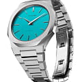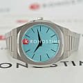 Наручные часы D1 Milano UTBU08 из коллекции Ultra Thin сочетают в себе современный дизайн и инновационные технологии. Модель обладает круглым корпусом диаметром 38 мм, выполненным из нержавеющей стали, что обеспечивает высокую устойчивость к внешним воздействиям. Циферблат светло-голубого цвета с текстурой "лен" создает элегантный и запоминающийся образ, подчеркивая уникальность модели среди других часов. Защиту циферблата обеспечивает сапфировое стеклоСапфировое стеклоПрочный и надёжный материал из кристалла сапфира синтетического происхождения, характеризующийся особой твёрдостью и устойчивостью к царапинам и повреждениям., известное своей устойчивостью к царапинам и высокой прозрачностью. Часы оснащены кварцевым механизмом Miyota 1L22, гарантирующим точность хода без необходимости подзаводки. Браслет выполнен из нержавеющей стали с полированной и матовой отделкой на раскладной застёжкеРаскладная застёжкаТакой тип застёжки используется только на браслетах из металла. Она никогда не раскрывается полностью, происходит разделение на 2 и более частей. Раскладывающая застёжка снизит вероятность потери часов к минимуму., что обеспечивает комфортное ношение на протяжении всего дня. Водонепроницаемость модели составляет 50 метров, что позволяет использовать часы в повседневной жизни, включая контакт с водой при мытье рук или дожде, однако не рекомендуется для погружений или активных водных видов спорта. Изготовленные в Италии, эти ультратонкие часы станут стильным аксессуаром, идеально дополняющим как деловой, так и casual-образ.