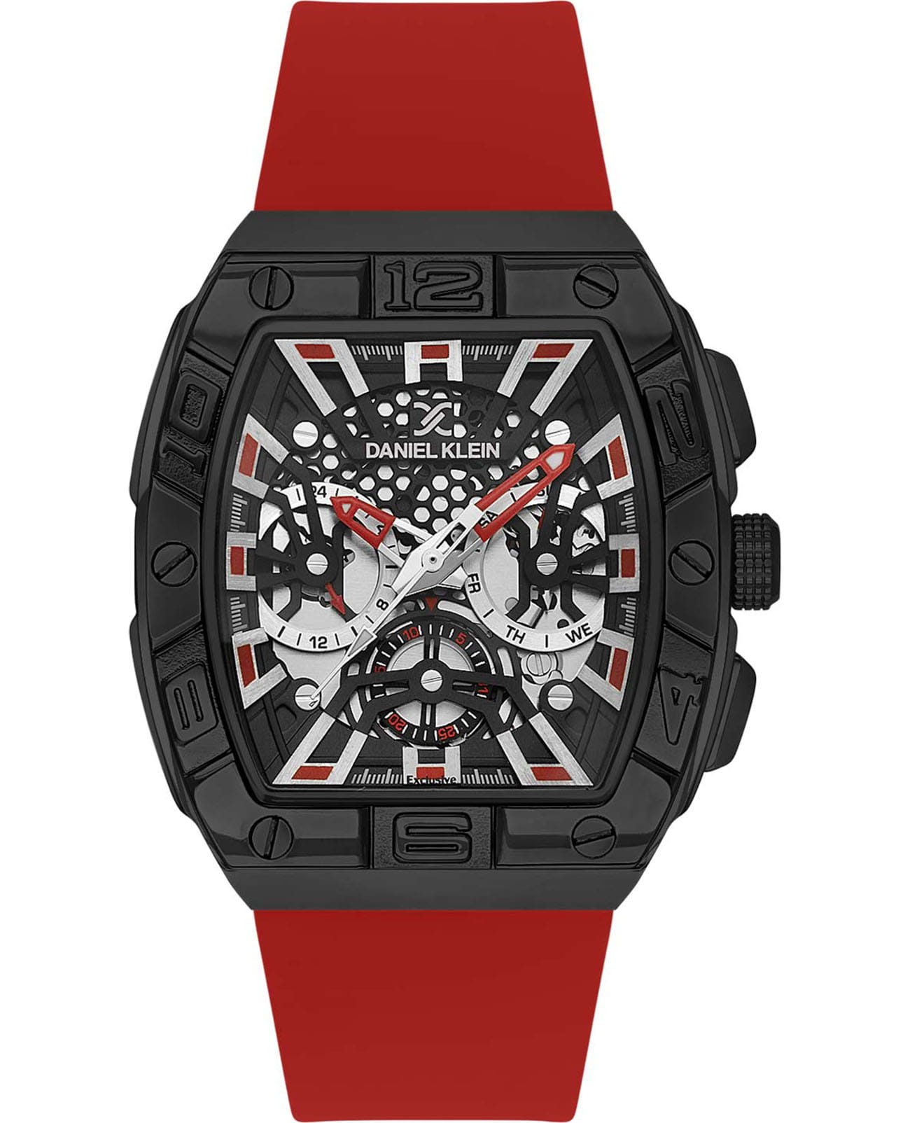 Мужские кварцевые часы Daniel Klein — это незаменимый помощник в вопросах времени. Корпус размером 42,5×51 мм выполнен из металла с IP-покрытиемIP-покрытиеМетод ионного напыления. Демонстрирует повышенную устойчивость к истиранию, окислению и химическим веществам. Под воздействием высокого давления и температуры около 1500°C молекулы металла надёжно соединяются с частицами корпуса часов.. БезельБезельВнешний ободок, закрепляющий стекло. В спортивных часах так называется поворотное кольцо с делениями на циферблате, выполняет роль таймера – замеряет отрезки времени на шкале. Неподвижный безель – элемент декора. Однонаправленно вращающийся безель на дайверских часах позволяет фиксировать моменты погружения и выныривания на поверхность. с метками в виде арабских цифр. Циферблат чёрного цвета двухуровневой конструкции оформлен штрихами, стрелками и тремя вынесенными субциферблатами: для отображения дня недели, даты и 24-часового формата времени. Стрелки и метки с люминесцентным покрытиемЛюминесцентное покрытиеПозволяет считывать показания времени в темноте. Производители наносят на стрелки, часовые индексы, безель или поверхность циферблата светонакопительный состав, дающий холодное свечение., обеспечивающим хорошую читаемость в темноте. Циферблат защищён минеральным стекломМинеральное стеклоМинеральное стекло представляет собой искусственно выращенный минерал кварца. Такое стекло отличается особой устойчивостью к повреждениям и царапинам. Уступает по некоторым качествам сапфировому стеклу.. Часы оснащены силиконовым ремешком на классической пряжке. Водонепроницаемость 50 м позволяет использовать часы в повседневных условиях. Идеальный выбор для тех, кто ценит турецкое качество и универсальный дизайн.