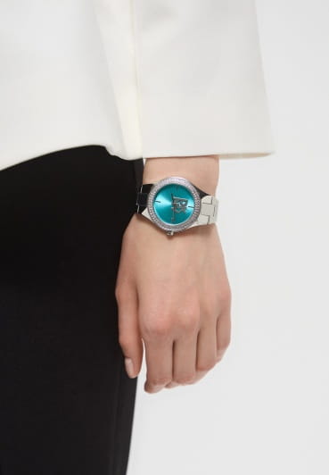 DKNY Parsons Glitz DK1L025M0035 воплощают в себе шик и изысканность. Корпус из нержавеющей стали диаметром 38 мм и минеральное стеклоМинеральное стеклоМинеральное стекло представляет собой искусственно выращенный минерал кварца. Такое стекло отличается особой устойчивостью к повреждениям и царапинам. Уступает по некоторым качествам сапфировому стеклу. обеспечивает защиту от царапин, а водонепроницаемость до 50 метров делает модель практичной для активного отдыха или повседневной носки. Браслет из нержавеющей стали на раскладной застёжкеРаскладная застёжкаТакой тип застёжки используется только на браслетах из металла. Она никогда не раскрывается полностью, происходит разделение на 2 и более частей. Раскладывающая застёжка снизит вероятность потери часов к минимуму. надежно фиксирует часы на руке и подчёркивает женственность дизайна. БезельБезельВнешний ободок, закрепляющий стекло. В спортивных часах так называется поворотное кольцо с делениями на циферблате, выполняет роль таймера – замеряет отрезки времени на шкале. Неподвижный безель – элемент декора. Однонаправленно вращающийся безель на дайверских часах позволяет фиксировать моменты погружения и выныривания на поверхность. инкрустирован кристаллами. Эта модель станет идеальным дополнением вашего гардероба, подчеркнув индивидуальный стиль.