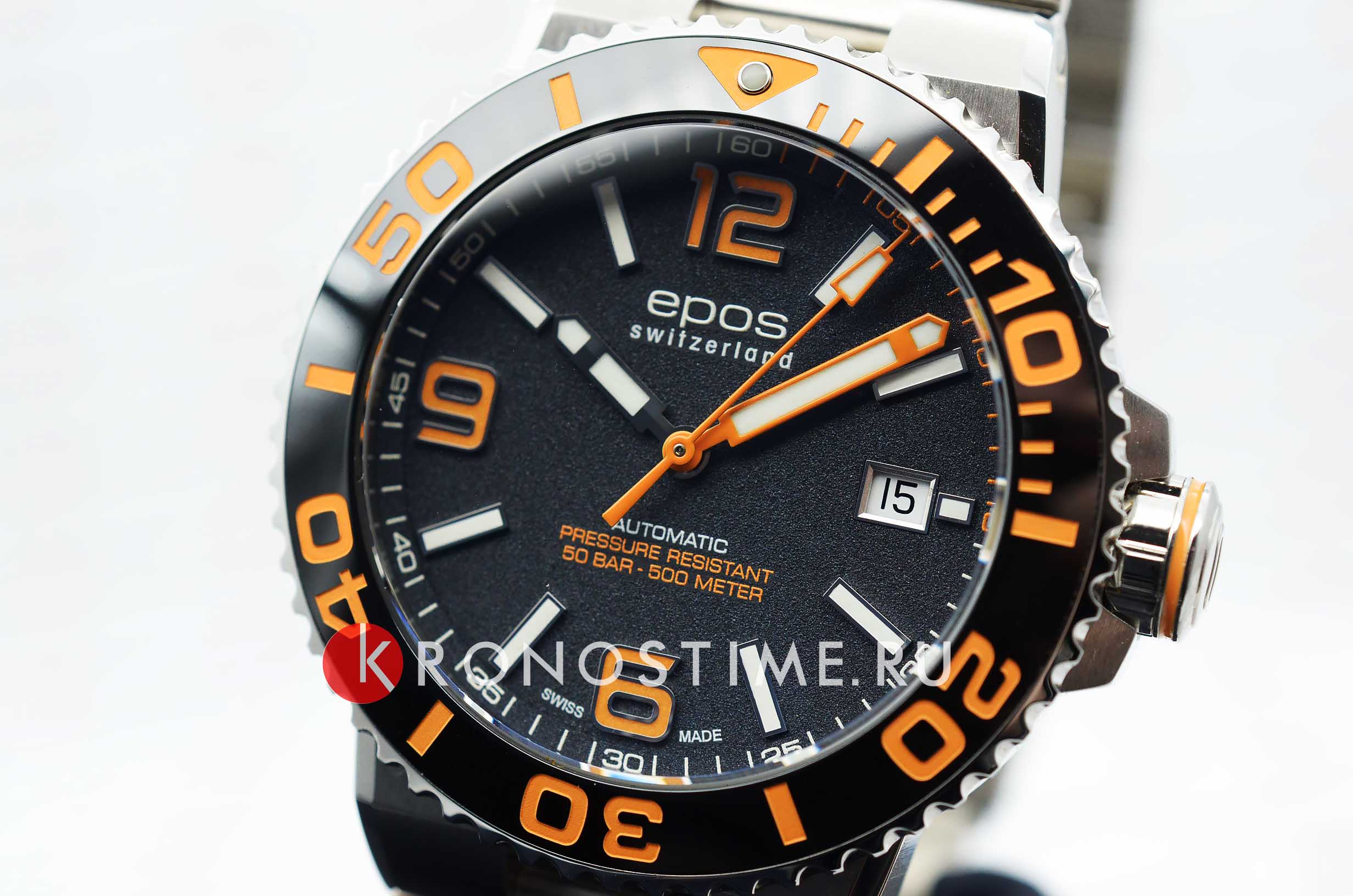 Мужские швейцарские механические часы с сапфировым стекломСапфировое стеклоПрочный и надёжный материал из кристалла сапфира синтетического происхождения, характеризующийся особой твёрдостью и устойчивостью к царапинам и повреждениям. Epos 3441.131.99.52.30 керамическим безелем и гелиевым клапаном. Изысканные часы с круглым корпусом. Доступный взору механизм и строгий дизайн подчеркивает их сдержанный характер. Oeuvre d'art Limited Edition. Особенный корпус для дайверов с водонепроницаемостью в 50 атмосфер. Люминесцентная подсветкаЛюминесцентное покрытиеПозволяет считывать показания времени в темноте. Производители наносят на стрелки, часовые индексы, безель или поверхность циферблата светонакопительный состав, дающий холодное свечение. стрелок и меток. Раскладная застёжкаРаскладная застёжкаТакой тип застёжки используется только на браслетах из металла. Она никогда не раскрывается полностью, происходит разделение на 2 и более частей. Раскладывающая застёжка снизит вероятность потери часов к минимуму.