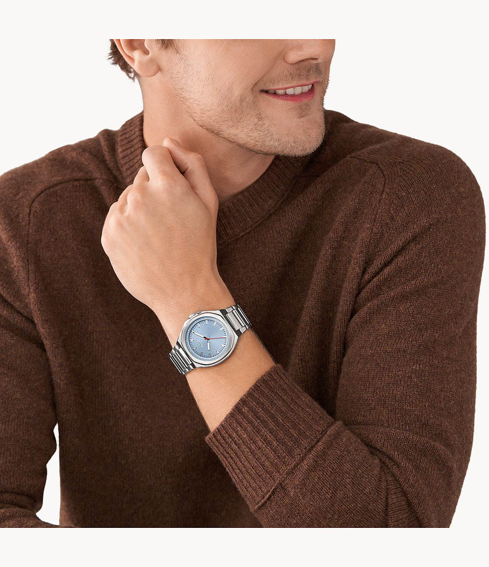 Механический механизм (автоматический калибр) с высокой точностью. Минеральное стеклоМинеральное стеклоМинеральное стекло представляет собой искусственно выращенный минерал кварца. Такое стекло отличается особой устойчивостью к повреждениям и царапинам. Уступает по некоторым качествам сапфировому стеклу. устойчивое к появлению царапин, обладающее высокой прозрачностью. Стрелки и метки с люминесцентным покрытиемЛюминесцентное покрытиеПозволяет считывать показания времени в темноте. Производители наносят на стрелки, часовые индексы, безель или поверхность циферблата светонакопительный состав, дающий холодное свечение.. Класс водозащиты: 50 метров, позволит защитить корпус от случайных брызг или капель дождя. Корпус часов и браслет изготовлены из нержавеющей стали. Браслет с раскладной застёжкойРаскладная застёжкаТакой тип застёжки используется только на браслетах из металла. Она никогда не раскрывается полностью, происходит разделение на 2 и более частей. Раскладывающая застёжка снизит вероятность потери часов к минимуму..
