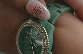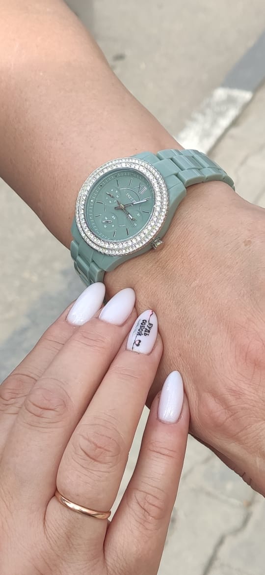 Модель элегантная ,приятного мятного цвета, безель украшен кристаллами. Стрелки светятся в темноте. Дата и день недели отображаются на отдельных циферблатах. Часы шли в брендовой коробке, гарантийный талон был вложен. Доставили быстро.