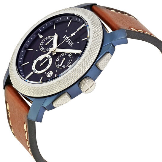 Мужские кварцевые часы FS5232 Fossil Machine Chronograph. Корпус часов изготовлен из нержавеющей стали. Стрелки и метки с люминесцентным покрытиемЛюминесцентное покрытиеПозволяет считывать показания времени в темноте. Производители наносят на стрелки, часовые индексы, безель или поверхность циферблата светонакопительный состав, дающий холодное свечение.. Минеральное стеклоМинеральное стеклоМинеральное стекло представляет собой искусственно выращенный минерал кварца. Такое стекло отличается особой устойчивостью к повреждениям и царапинам. Уступает по некоторым качествам сапфировому стеклу. устойчивое к появлению царапин, обладающее высокой прозрачностью. Водозащита: 50 метров, позволит защитить корпус от случайных брызг или капель дождя. Кожаный ремешок.