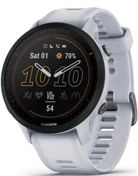 Умные многофункциональные мужские часы Garmin Forerunner 955 Solar 010-02638-21, электронный механизм с высокой точностью. Класс водозащиты: 50 метров, позволит защитить корпус от случайных брызг или капель дождя. Материал корпуса: пластик. Циферблат с минеральным стекломМинеральное стеклоМинеральное стекло представляет собой искусственно выращенный минерал кварца. Такое стекло отличается особой устойчивостью к повреждениям и царапинам. Уступает по некоторым качествам сапфировому стеклу.. Экран с светодиодной подсветкойСветодиодная подсветкаСветодиодная или LED-подсветка обеспечивает появление яркого холодного свечения за счёт LED-элементов - маленьких лампочек. Они потребляют минимальное количество энергии, чаще всего можно встретить 1 светодиод, в нижней части циферблата.. Период работы: Режим смарт-часов: до 15 дней Режим GPS без музыки: до 42 часов Режим всех систем GNSS и многополосный режим с музыкой: до 8,5 часов Режим всех систем GNSS и многополосный режим без музыки: до 20 часов Режим Ultratrac: до 80 часов