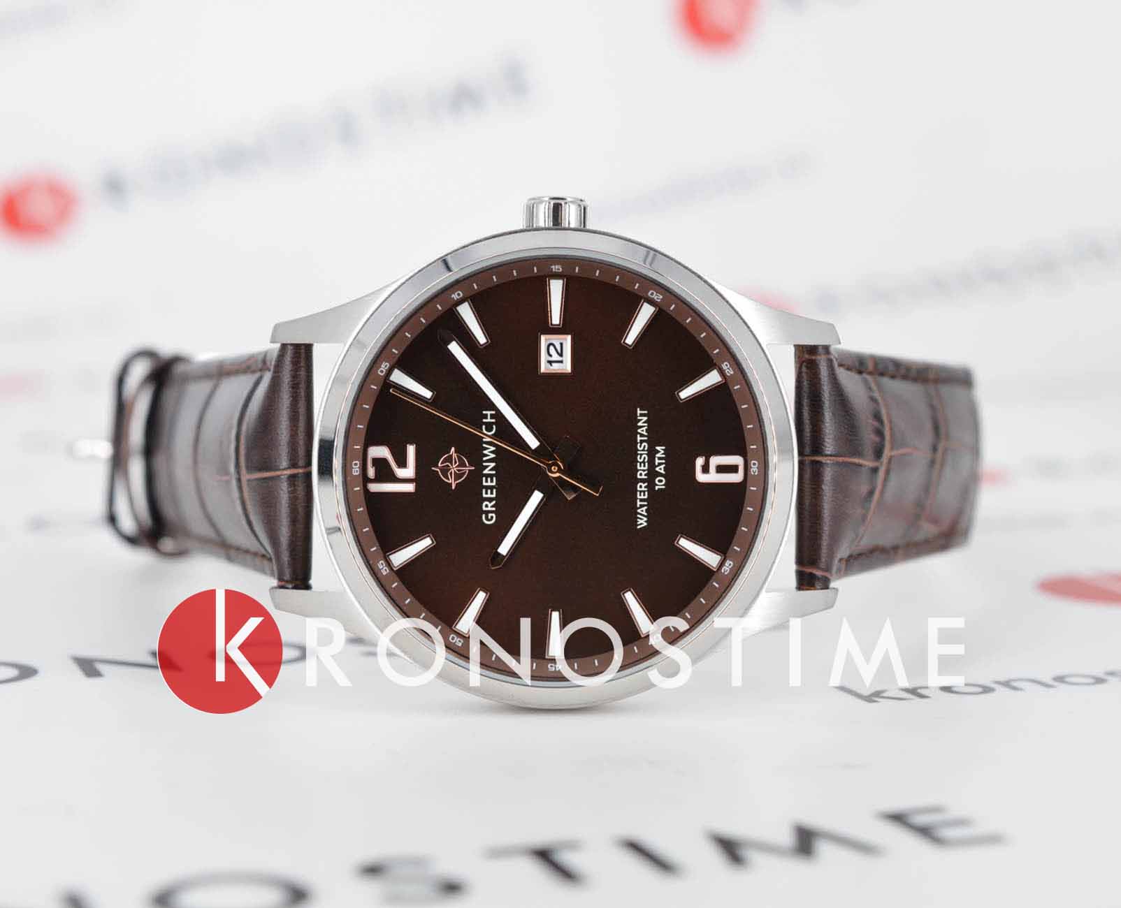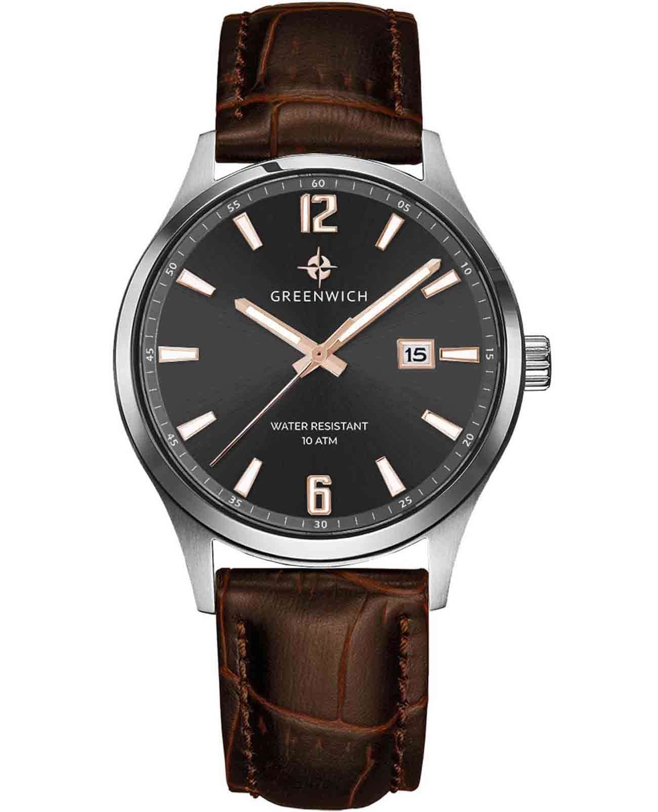 Мужские часы Greenwich Octopus GW 051.12.30, кварцевый механизм с высокой точностью. Минеральное стеклоМинеральное стеклоМинеральное стекло представляет собой искусственно выращенный минерал кварца. Такое стекло отличается особой устойчивостью к повреждениям и царапинам. Уступает по некоторым качествам сапфировому стеклу. устойчивое к появлению царапин, обладающее высокой прозрачностью. Корпус изготовлен из нержавеющей стали. Окошко даты находится в положении 3 часа. Стрелки с люминесцентным покрытиемЛюминесцентное покрытиеПозволяет считывать показания времени в темноте. Производители наносят на стрелки, часовые индексы, безель или поверхность циферблата светонакопительный состав, дающий холодное свечение.. Класс водозащиты: 100 метров, позволит плавать, нырять и заниматься другими водными видами спорта. Кожаный ремешок на стандартной застежке.