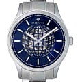 Мужские механические часы с минеральным стекломМинеральное стеклоМинеральное стекло представляет собой искусственно выращенный минерал кварца. Такое стекло отличается особой устойчивостью к повреждениям и царапинам. Уступает по некоторым качествам сапфировому стеклу. Greenwich Globe GW 056.10.36. Корпус часов изготовлен из стали. Стрелки с люминесцентным покрытиемЛюминесцентное покрытиеПозволяет считывать показания времени в темноте. Производители наносят на стрелки, часовые индексы, безель или поверхность циферблата светонакопительный состав, дающий холодное свечение.. Класс водозащиты: 100 метров, позволит плавать, нырять и заниматься другими водными видами спорта. Стальной браслет на раскладной застёжкеРаскладная застёжкаТакой тип застёжки используется только на браслетах из металла. Она никогда не раскрывается полностью, происходит разделение на 2 и более частей. Раскладывающая застёжка снизит вероятность потери часов к минимуму..