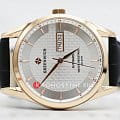 Мужские часы с минеральным стекломМинеральное стеклоМинеральное стекло представляет собой искусственно выращенный минерал кварца. Такое стекло отличается особой устойчивостью к повреждениям и царапинам. Уступает по некоторым качествам сапфировому стеклу. Greenwich Good Luck Classic GW 074.41.33, представляют собой классический вариант для повседневной носки. В центральной части циферблата — отличительная черта моделей этой серии: гильоше, объемные линии которого напоминают волны. Обратите внимание на форму пластины, где крепятся накладные риски: она сделана в форме латинской буквы G, первой буквы в названии бренда. Часы характеризуются традиционными формами, лаконичным исполнением, что делает модель элегантным дополнением к деловому костюму. Сквозь прозрачную заднюю крышку вы увидите детали механизма TMI с декорированным ротором: на нем выгравировано изображение символа английских моряков — парусника. Ремешок на стандартной застёжке выполнен из натуральной кожи с прошивкой в тон. Дизайн, актуальный для любого современного образа, и надежность используемых материалов делают автоматические часы Greenwich удобным и стильным аксессуаром на каждый день. Окошко даты и дня недели находится в положении 3 часа. Класс водозащиты: 100 метров, позволит плавать, нырять и заниматься другими водными видами спорта. Корпус с PVD-покрытиемPVDУльтратонкое покрытие наносится в технике вакуумного напыления, сочетает в себе нитрид титана особой прочности со слоем золота или оксида хрома. Несёт в себе декоративную или защитную функцию..
