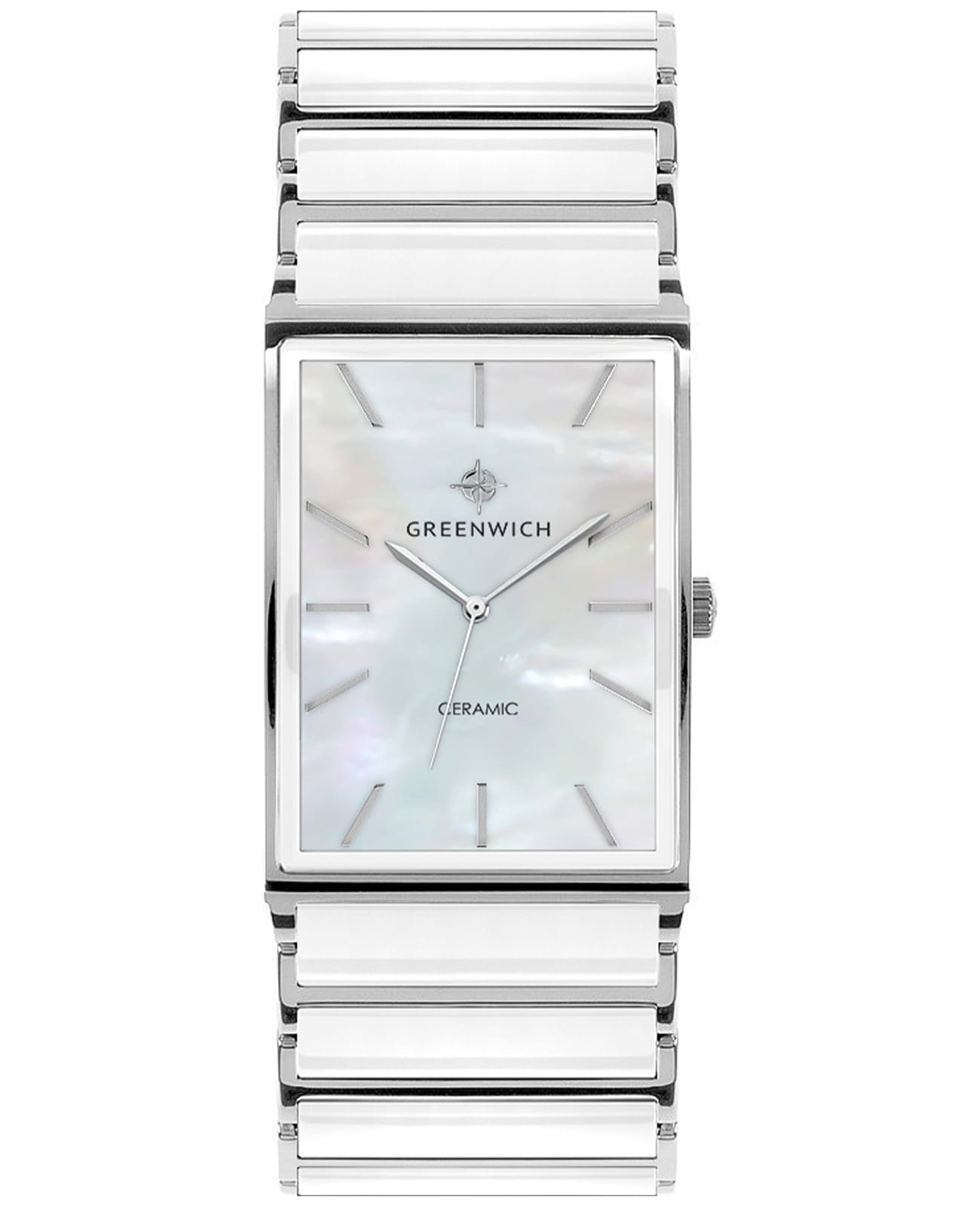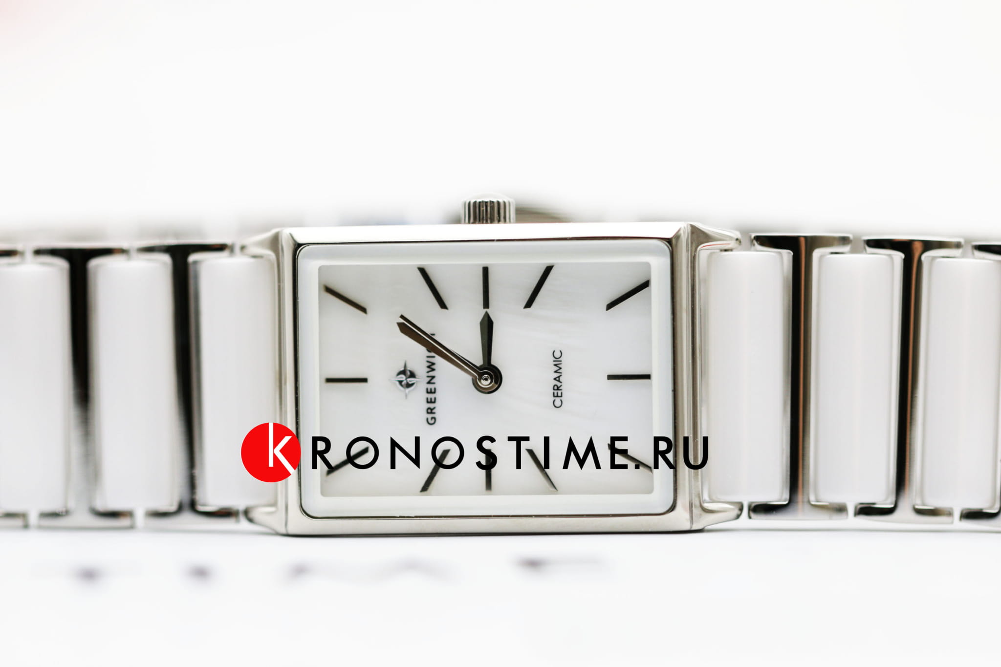 Английские женские кварцевые часы с минеральным стекломМинеральное стеклоМинеральное стекло представляет собой искусственно выращенный минерал кварца. Такое стекло отличается особой устойчивостью к повреждениям и царапинам. Уступает по некоторым качествам сапфировому стеклу. Greenwich GW 521.10.33, кварцевый механизм с высокой точностью. Класс водозащиты: 50 метров, позволит защитить корпус от случайных брызг или капель дождя. Корпус часов изготовлен из стали серебристого цвета с керамическими вставками. Браслет с застёжкой-бабочкой с кнопкамиЗастёжка "бабочка"Такой вид застёжки дополняется предохранителями, помогающими избежать случайного раскрытия браслета. Обладают изящным исполнением. .