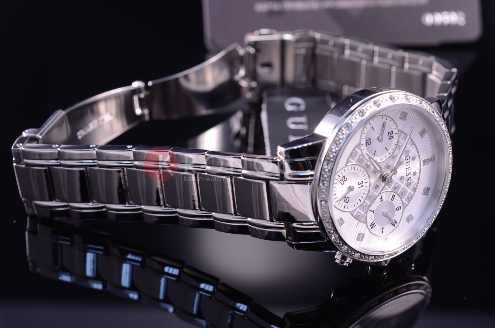 Классические наручные женские часы. Корпус часов выполнен из высокопрочной стали с антикоррозийными свойствами . Дизайн циферблата и стрелок исполнен в строгом и лаконичном стиле бренда Guess. Часы укомплектованы минеральным стеклом, устойчивым к появлению царапин и удерживаются на руке браслетом из нержавеющей стали. Часы станут прекрасным дополнением к образу.