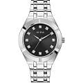 Эти элегантные часы Guess GW0114L1 станут идеальным дополнением для тех, кто стремится подчеркнуть свой стиль и уверенность. Оснащенные надежным кварцевым механизмом, они обеспечивают точность и долговечность. Круглый стальной корпус диаметром 36 мм с полированной поверхностью придает часам современный и изысканный вид.  Метки на циферблате украшены кристаллами, что подчеркивает классический стиль аксессуара. Рифленая заводная головка обеспечивает удобство в настройке времени. Стальной браслет с раскладной застежкойРаскладная застёжкаТакой тип застёжки используется только на браслетах из металла. Она никогда не раскрывается полностью, происходит разделение на 2 и более частей. Раскладывающая застёжка снизит вероятность потери часов к минимуму. гарантирует комфортное ношение и надежную фиксацию на запястье. Часы обладают водозащитой 30WR, что делает их устойчивыми к случайным брызгам. Минеральное стеклоМинеральное стеклоМинеральное стекло представляет собой искусственно выращенный минерал кварца. Такое стекло отличается особой устойчивостью к повреждениям и царапинам. Уступает по некоторым качествам сапфировому стеклу. защищает циферблат от царапин и других повреждений. Эти часы сочетают в себе превосходное качество и изысканность. Они станут отличным выбором для тех, кто ценит стильный дизайн и функциональность в одном аксессуаре, подходят для ежедневного использования.