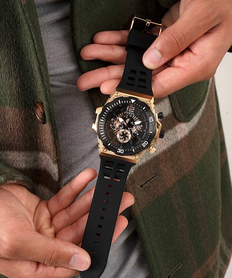 Мужские наручные часы Guess Sport Steel GW0325G1, кварцевый механизм с высокой точностью. Класс водозащиты: 50 метров, позволит защитить корпус от случайных брызг или капель дождя. Корпус часов изготовлен из стали, золотистого цвета.