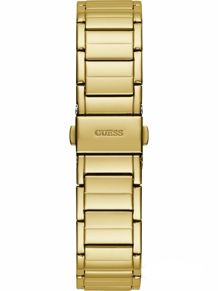 Женские наручные часы Guess Sport Steel GW0552L2 с минеральным стекломМинеральное стеклоМинеральное стекло представляет собой искусственно выращенный минерал кварца. Такое стекло отличается особой устойчивостью к повреждениям и царапинам. Уступает по некоторым качествам сапфировому стеклу., кварцевый механизм с высокой точностью. 24-х часовой формат времени, число и день недели отображаются на отдельных циферблатах. Стрелки и метки с люминесцентным покрытиемЛюминесцентное покрытиеПозволяет считывать показания времени в темноте. Производители наносят на стрелки, часовые индексы, безель или поверхность циферблата светонакопительный состав, дающий холодное свечение.. Класс водозащиты: 50 метров, позволит защитить корпус от случайных брызг или капель дождя. Корпус часов и браслет изготовлены из стали с IP-покрытиемIP-покрытиеМетод ионного напыления. Демонстрирует повышенную устойчивость к истиранию, окислению и химическим веществам. Под воздействием высокого давления и температуры около 1500°C молекулы металла надёжно соединяются с частицами корпуса часов.. БезельБезельВнешний ободок, закрепляющий стекло. В спортивных часах так называется поворотное кольцо с делениями на циферблате, выполняет роль таймера – замеряет отрезки времени на шкале. Неподвижный безель – элемент декора. Однонаправленно вращающийся безель на дайверских часах позволяет фиксировать моменты погружения и выныривания на поверхность. инкрустирован кристаллами. Браслет с раскладной застёжкойРаскладная застёжкаТакой тип застёжки используется только на браслетах из металла. Она никогда не раскрывается полностью, происходит разделение на 2 и более частей. Раскладывающая застёжка снизит вероятность потери часов к минимуму..