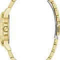Женские наручные часы Guess Sport GW0948L2 — изысканный аксессуар, сочетающий в себе элегантность и современный стиль. Круглый корпус из стали с золотистым IP-покрытиемIP-покрытиеМетод ионного напыления. Демонстрирует повышенную устойчивость к истиранию, окислению и химическим веществам. Под воздействием высокого давления и температуры около 1500°C молекулы металла надёжно соединяются с частицами корпуса часов., диаметром 35 мм придает часам прочность и устойчивость к износу, обеспечивая их привлекательный внешний вид на долгие годы. Циферблат золотого цвета выполнен по технологии Sunray, имитирующей солнечные лучи, и украшен метками в виде штрихов, что придает часам утонченность и изысканность. Минеральное стеклоМинеральное стеклоМинеральное стекло представляет собой искусственно выращенный минерал кварца. Такое стекло отличается особой устойчивостью к повреждениям и царапинам. Уступает по некоторым качествам сапфировому стеклу. защищает циферблат от царапин и других повреждений. Люминесцентное покрытиеЛюминесцентное покрытиеПозволяет считывать показания времени в темноте. Производители наносят на стрелки, часовые индексы, безель или поверхность циферблата светонакопительный состав, дающий холодное свечение. на стрелках обеспечивает отличную видимость в темноте. БезельБезельВнешний ободок, закрепляющий стекло. В спортивных часах так называется поворотное кольцо с делениями на циферблате, выполняет роль таймера – замеряет отрезки времени на шкале. Неподвижный безель – элемент декора. Однонаправленно вращающийся безель на дайверских часах позволяет фиксировать моменты погружения и выныривания на поверхность. дополнен кристаллами, которые добавляют аксессуару оригинальность и характер. Рифленая заводная головка обеспечивает удобство в использовании и подчеркивает внимание к деталям. Часы оснащены стальным браслетом с золотистым IP-покрытиемIP-покрытиеМетод ионного напыления. Демонстрирует повышенную устойчивость к истиранию, окислению и химическим веществам. Под воздействием высокого давления и температуры около 1500°C молекулы металла надёжно соединяются с частицами корпуса часов., который обеспечивает надежность и комфорт. Раскладная застежкаРаскладная застёжкаТакой тип застёжки используется только на браслетах из металла. Она никогда не раскрывается полностью, происходит разделение на 2 и более частей. Раскладывающая застёжка снизит вероятность потери часов к минимуму. гарантирует легкость и безопасность при ношении. Водозащита уровня 50WR защищает часы от случайных брызг, делая их подходящими для повседневного использования.