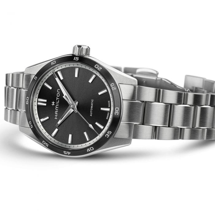 Модели из линии Jazzmaster Performer, привлекающие внимание ярким дизайном в стиле спортивный шик, сочетают в себе функциональность и эстетичность. Часы Jazzmaster Performer Automatic оснащены автоматическим механизмом H-10 с 80-часовым запасом хода. Модель в корпусе из нержавеющей стали диаметром 34 мм имеет лаконичный черный циферблат и изысканный браслет из нержавеющей стали c раскладной застёжкойРаскладная застёжкаТакой тип застёжки используется только на браслетах из металла. Она никогда не раскрывается полностью, происходит разделение на 2 и более частей. Раскладывающая застёжка снизит вероятность потери часов к минимуму..