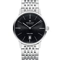 Мужские механические швейцарские часы Hamilton American Classic Intra-Matic Auto H38455131, механический механизм (автоматический калибр) с высокой точностью. Сапфировое стекло устойчивое к появлению царапин, обладающее высокой прозрачностью. Класс водозащиты: 50 метров, позволит защитить корпус от случайных брызг или капель дождя. Корпус часов изготовлен из стали, серебристого цвета.