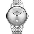 Мужские наручные часы Hamilton American Classic Intra-Matic Auto H38755151 с надёжным автоматическим механизмом. Корпус часов изготовлен из нержавеющей стали. Стальной браслет на застёжке-бабочке с кнопкамиЗастёжка "бабочка"Такой вид застёжки дополняется предохранителями, помогающими избежать случайного раскрытия браслета. Обладают изящным исполнением. . Сапфировое стеклоСапфировое стеклоПрочный и надёжный материал из кристалла сапфира синтетического происхождения, характеризующийся особой твёрдостью и устойчивостью к царапинам и повреждениям. с антибликовым покрытием. Окошко даты находится в положении 6 часов. Класс водозащиты: 50 метров, позволит защитить корпус от случайных брызг или капель дождя.