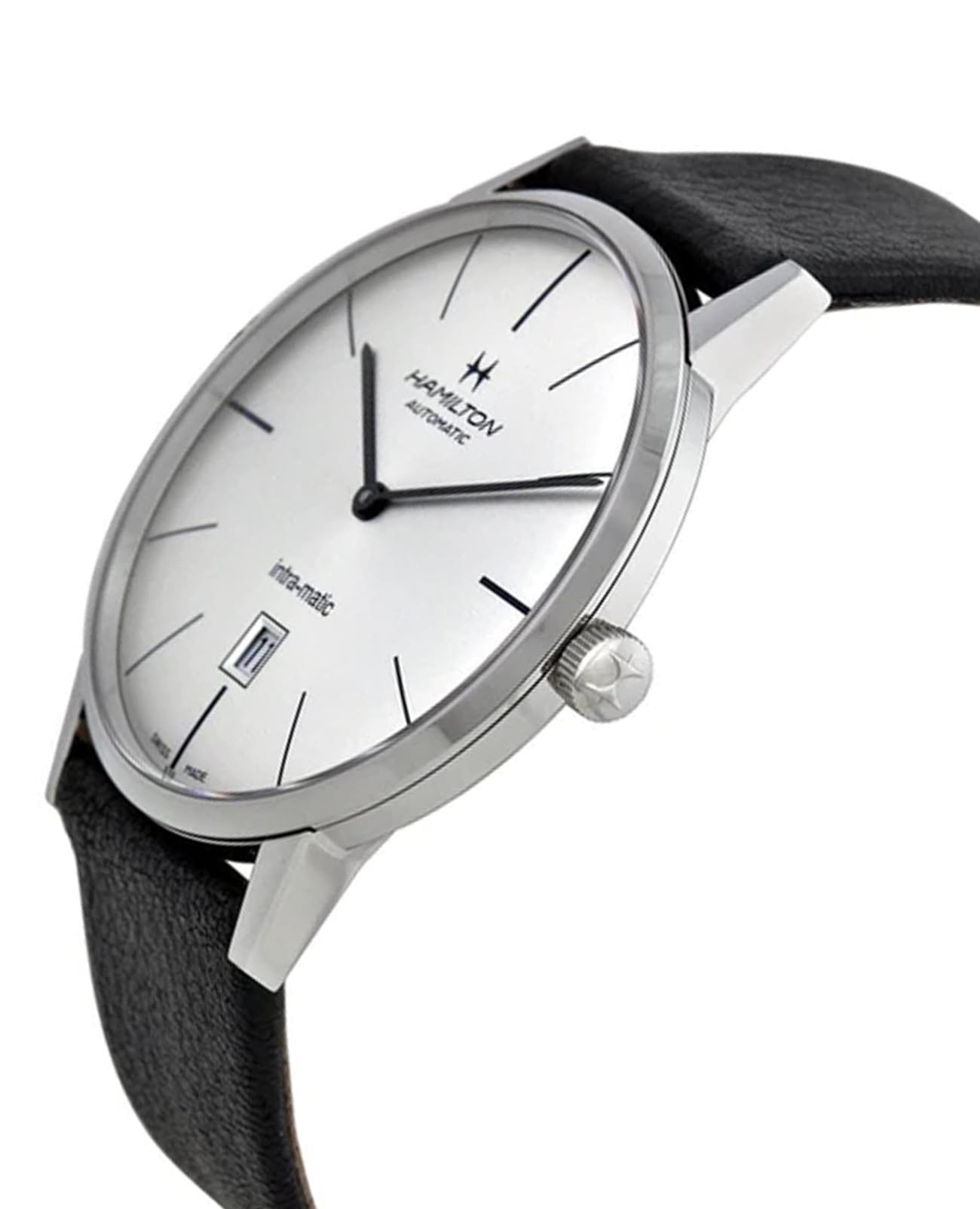 Мужские наручные часы Hamilton American Classic Intra-Matic Auto H38755751 с надёжным автоматическим механизмом. Корпус часов изготовлен из нержавеющей стали с PVD-покрытиемPVDУльтратонкое покрытие наносится в технике вакуумного напыления, сочетает в себе нитрид титана особой прочности со слоем золота или оксида хрома. Несёт в себе декоративную или защитную функцию.. Практичный кожаный ремешок на стандартной застёжке. Сапфировое стеклоСапфировое стеклоПрочный и надёжный материал из кристалла сапфира синтетического происхождения, характеризующийся особой твёрдостью и устойчивостью к царапинам и повреждениям. с антибликовым покрытием. Окошко даты находится в положении 6 часов. Класс водозащиты: 50 метров, позволит защитить корпус от случайных брызг или капель дождя.