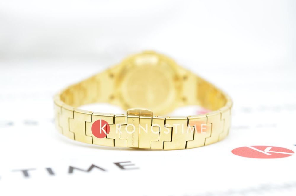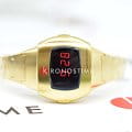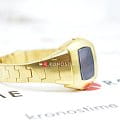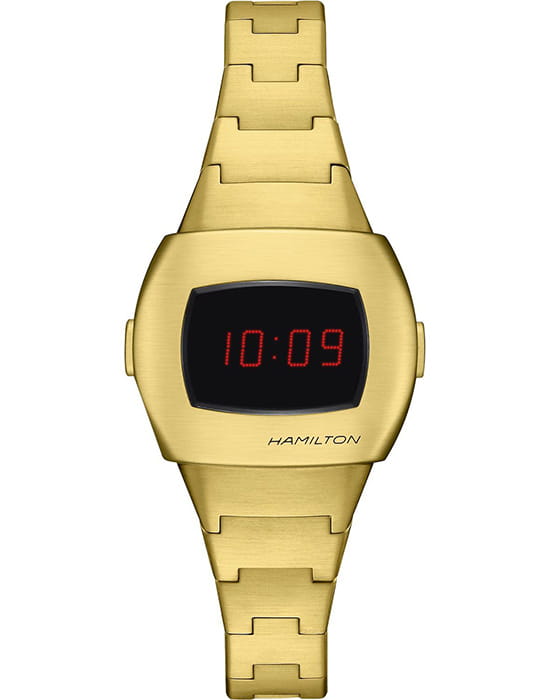 Hamilton PSR 74 H52314130 — стильная цифровая модель в ретрофутуристическом дизайне с акцентом на легендарное наследие Pulsar. Корпус размерами 26 × 31 мм выполнен из нержавеющей стали с PVD-покрытиемPVDУльтратонкое покрытие наносится в технике вакуумного напыления, сочетает в себе нитрид титана особой прочности со слоем золота или оксида хрома. Несёт в себе декоративную или защитную функцию. жёлтого золота, придающим часам винтажное звучание и элегантность. Гибридный дисплей сочетает постоянную LCD-индикацию и активируемую по нажатию LED-подсветку с характерными красными цифрами. Циферблат защищён сапфировым стекломСапфировое стеклоПрочный и надёжный материал из кристалла сапфира синтетического происхождения, характеризующийся особой твёрдостью и устойчивостью к царапинам и повреждениям. с антибликовым покрытиемАнтибликовое покрытиеСлой оксида металла в 0,13-0,3 микрон, благодаря которому стекло часов не бликует и не отражает свет. Антибликовое покрытие уменьшает отражение света в 10 раз, обеспечивая отличную читаемость показателей циферблата.. Внутри установлен точный кварцевый механизм с четырёхлетним сроком службы батареи. Формат времени можно выбрать — 12 или 24 часа, также отображается дата. Браслет выполнен из стали с PVD-покрытиемPVDУльтратонкое покрытие наносится в технике вакуумного напыления, сочетает в себе нитрид титана особой прочности со слоем золота или оксида хрома. Несёт в себе декоративную или защитную функцию. в тон корпуса, а застёжка 'бабочка'Застёжка "бабочка"Такой вид застёжки дополняется предохранителями, помогающими избежать случайного раскрытия браслета. Обладают изящным исполнением. обеспечивает комфортную посадку и надёжную фиксацию. Водонепроницаемость 100 метров делает модель подходящей для активного повседневного использования. Hamilton PSR 74 — культовая классика с цифровой душой.