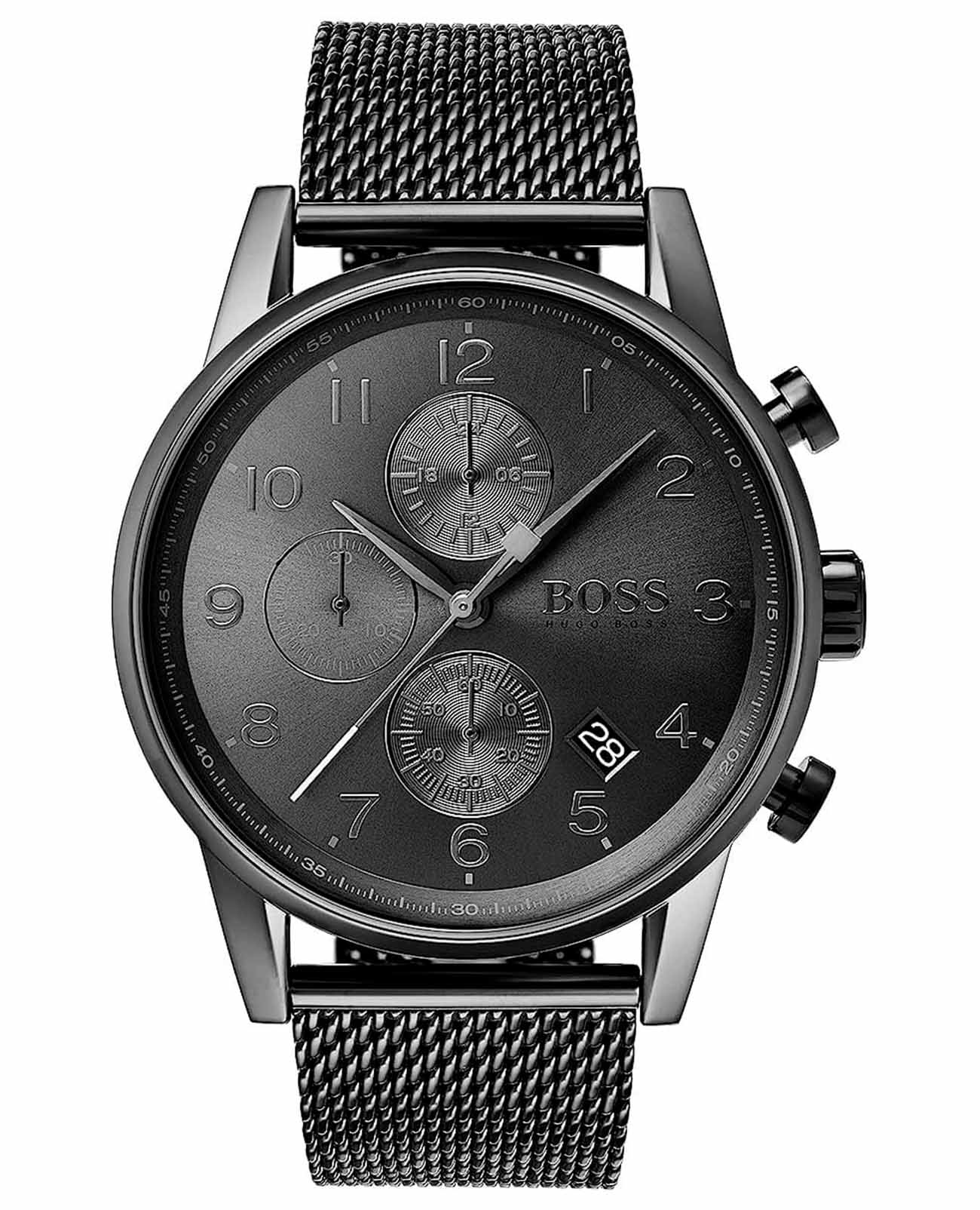 Мужские кварцевые часы Hugo Boss HB1513674 — это стильный аксессуар, сочетающий в себе элегантность и функциональность. Модель выполнена в круглой форме из стали с IP-покрытиемIP-покрытиеМетод ионного напыления. Демонстрирует повышенную устойчивость к истиранию, окислению и химическим веществам. Под воздействием высокого давления и температуры около 1500°C молекулы металла надёжно соединяются с частицами корпуса часов., что придаёт ей устойчивость к царапинам и благородный внешний вид. Циферблат чёрного цвета дополнен арабскими цифрами и окошком даты, расположенным между отметками 4 и 5 часов. Защиту механизма обеспечивает минеральное стеклоМинеральное стеклоМинеральное стекло представляет собой искусственно выращенный минерал кварца. Такое стекло отличается особой устойчивостью к повреждениям и царапинам. Уступает по некоторым качествам сапфировому стеклу., устойчивое к повреждениям. Рифлёная заводная головка обеспечивает удобство в использовании. Стальной браслет миланского плетения с покрытием шириной 22 мм оснащён Раскладная застёжкаРаскладная застёжкаТакой тип застёжки используется только на браслетах из металла. Она никогда не раскрывается полностью, происходит разделение на 2 и более частей. Раскладывающая застёжка снизит вероятность потери часов к минимуму., обеспечивающей комфорт и надёжную фиксацию на запястье. Часы водонепроницаемы до 50 метров (, что позволяет использовать их при мытье рук или под лёгким дождём. Время отображается в 12- и 24-часовом формате, что делает модель универсальной для использования в разных условиях. Эти часы станут универсальным аксессуаром для тех, кто ценит сочетание стиля, качества и надёжности — идеальный выбор для повседневной носки и деловых встреч.