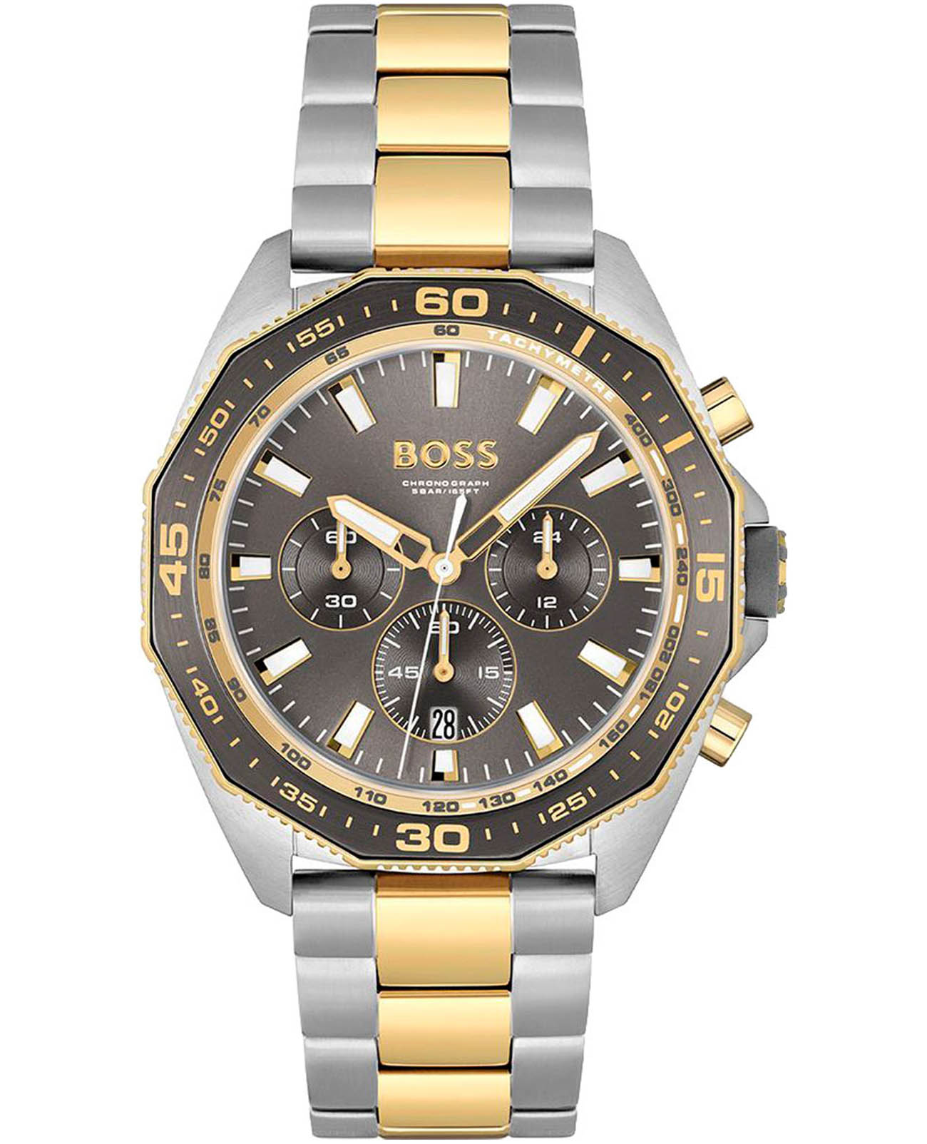 Мужские часы Hugo Boss Energy HB1513974 представлены в круглом 44-мм корпусе из нержавеющей стали с IP-покрытиемIP-покрытиеМетод ионного напыления. Демонстрирует повышенную устойчивость к истиранию, окислению и химическим веществам. Под воздействием высокого давления и температуры около 1500°C молекулы металла надёжно соединяются с частицами корпуса часов.. Оснащены кварцевым механизмом с функциями хронографаХронографФункция позволяет измерять отрезки времени с особой точностью: часы, минуты, секунды. Верным признаком хронографа является наличие на циферблате 3 дополнительных окошек-счётчиков., секундомеромСекундомерСекундоме́р — прибор, способный измерять интервалы времени с точностью до долей секунды. и тахиметромТахиметрРазмеченная шкала, располагается на ободке или безеле часов. Тахиметр позволяет рассчитать скорость на определённом участке пути, расстояние измеряется в километрах или милях. на безелеБезельВнешний ободок, закрепляющий стекло. В спортивных часах так называется поворотное кольцо с делениями на циферблате, выполняет роль таймера – замеряет отрезки времени на шкале. Неподвижный безель – элемент декора. Однонаправленно вращающийся безель на дайверских часах позволяет фиксировать моменты погружения и выныривания на поверхность.. Серый циферблат защищен устойчивым к царапинам минеральным стекломМинеральное стеклоМинеральное стекло представляет собой искусственно выращенный минерал кварца. Такое стекло отличается особой устойчивостью к повреждениям и царапинам. Уступает по некоторым качествам сапфировому стеклу.. Браслет из нержавеющей стали с IP-покрытиемIP-покрытиеМетод ионного напыления. Демонстрирует повышенную устойчивость к истиранию, окислению и химическим веществам. Под воздействием высокого давления и температуры около 1500°C молекулы металла надёжно соединяются с частицами корпуса часов. дополнен раскладной застёжкойРаскладная застёжкаТакой тип застёжки используется только на браслетах из металла. Она никогда не раскрывается полностью, происходит разделение на 2 и более частей. Раскладывающая застёжка снизит вероятность потери часов к минимуму., а стрелки покрыты люминесцентным составомЛюминесцентное покрытиеПозволяет считывать показания времени в темноте. Производители наносят на стрелки, часовые индексы, безель или поверхность циферблата светонакопительный состав, дающий холодное свечение. для видимости в темноте. Водонепроницаемость 50 метров (5 ATM) позволяет использовать часы для плавания.