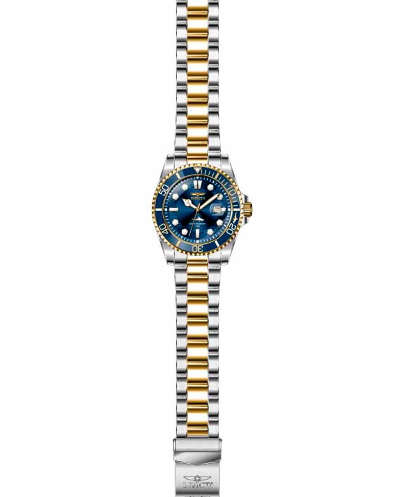 Мужские наручные часы Invicta IN30021 из коллекции Pro Diver сочетают в себе классический дизайн и функциональность для активного образа жизни. БезельБезельВнешний ободок, закрепляющий стекло. В спортивных часах так называется поворотное кольцо с делениями на циферблате, выполняет роль таймера – замеряет отрезки времени на шкале. Неподвижный безель – элемент декора. Однонаправленно вращающийся безель на дайверских часах позволяет фиксировать моменты погружения и выныривания на поверхность. с IP-покрытиемIP-покрытиеМетод ионного напыления. Демонстрирует повышенную устойчивость к истиранию, окислению и химическим веществам. Под воздействием высокого давления и температуры около 1500°C молекулы металла надёжно соединяются с частицами корпуса часов., что придает ей современный вид и защищает от внешних воздействий. Браслет выполнен из нержавеющей стали с частичным IP-покрытиемIP-покрытиеМетод ионного напыления. Демонстрирует повышенную устойчивость к истиранию, окислению и химическим веществам. Под воздействием высокого давления и температуры около 1500°C молекулы металла надёжно соединяются с частицами корпуса часов., а также оснащен раскладной застежкойРаскладная застёжкаТакой тип застёжки используется только на браслетах из металла. Она никогда не раскрывается полностью, происходит разделение на 2 и более частей. Раскладывающая застёжка снизит вероятность потери часов к минимуму. с системой блокировки, обеспечивающей комфортное ношение . Синий циферблат дополнен люминесцентными стрелками и метками Tritnite, гарантирующими отличную видимость в темноте. Для защиты используется минеральное стеклоМинеральное стеклоМинеральное стекло представляет собой искусственно выращенный минерал кварца. Такое стекло отличается особой устойчивостью к повреждениям и царапинам. Уступает по некоторым качествам сапфировому стеклу., которое обеспечивает прочность и устойчивость к царапинам . Часы работают на кварцевом механизме, что гарантирует точное время без необходимости подзаводки . На циферблате присутствует окно даты с увеличительным стеклом, добавляющим удобства при использовании. Водонепроницаемость модели достигает 100WR, что позволяет использовать часы во время плавания и других водных видов спорта .