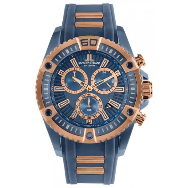 Стильные наручные часы Jacques Lemans идеально дополнят ваш образ. Механизм: Кварцевые; Корпус: сталь с IP покрытием; Браслет: силиконовый со стальными с IP покрытием вставками; Стекло: Минеральное; Водозащита: 200 м. (WR 200).