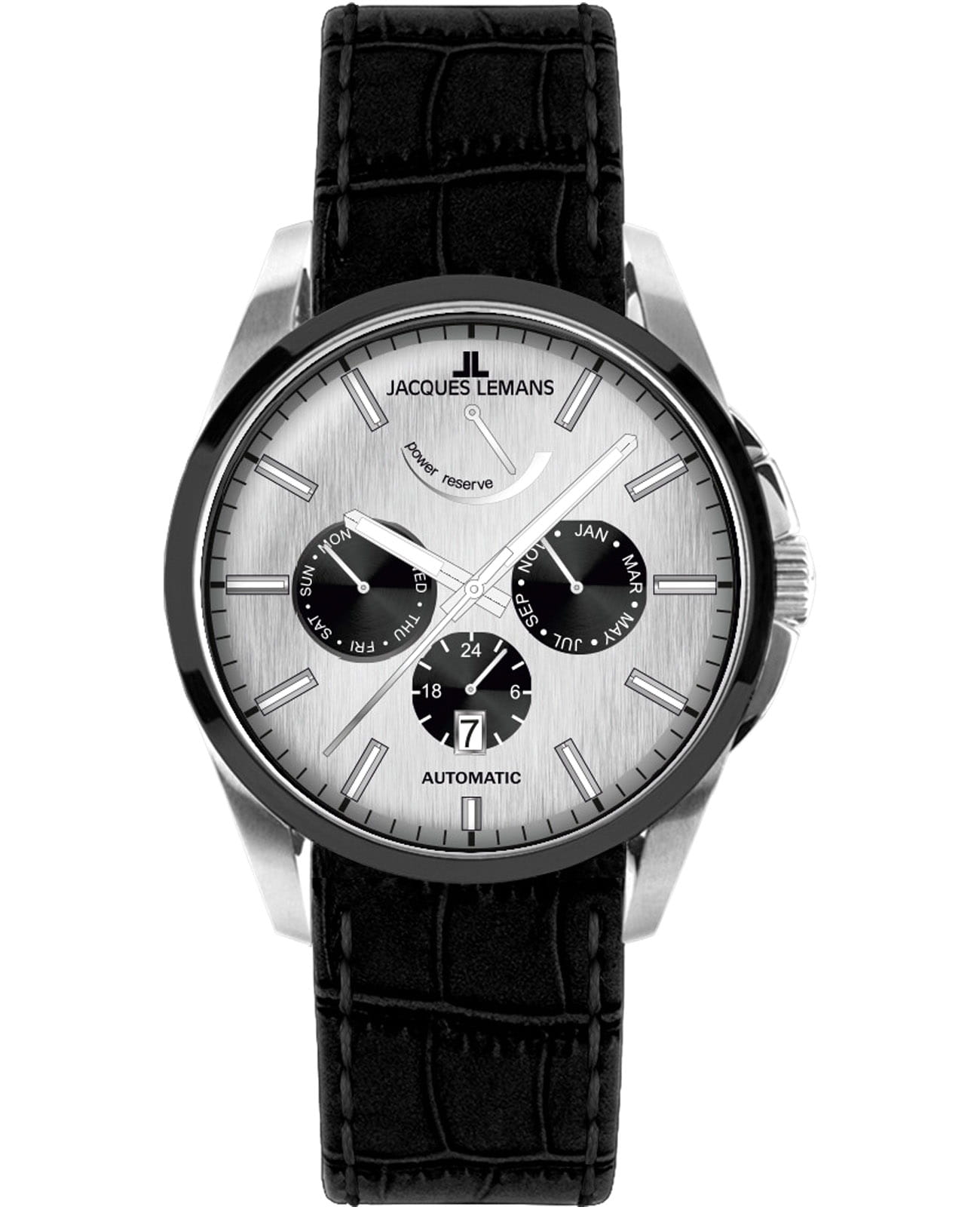 Мужские механические часы с автоподзаводом Jacques Lemans 1-2204Q – лаконичная красота и изысканная элегантность. Оригинальная модель с классическим оформлением станет превосходным завершением образа, наделив его индивидуальным характером. Корпус выполнен из нержавеющей стали серебристого цвета, диаметром 44 мм, что обеспечивает долговечность и утончённый внешний вид. Минеральное стеклоМинеральное стеклоМинеральное стекло представляет собой искусственно выращенный минерал кварца. Такое стекло отличается особой устойчивостью к повреждениям и царапинам. Уступает по некоторым качествам сапфировому стеклу. с сапфировым напылением защищает циферблат от царапин. Неподвижный безельБезельВнешний ободок, закрепляющий стекло. В спортивных часах так называется поворотное кольцо с делениями на циферблате, выполняет роль таймера – замеряет отрезки времени на шкале. Неподвижный безель – элемент декора. Однонаправленно вращающийся безель на дайверских часах позволяет фиксировать моменты погружения и выныривания на поверхность. с PVD-покрытиемPVDУльтратонкое покрытие наносится в технике вакуумного напыления, сочетает в себе нитрид титана особой прочности со слоем золота или оксида хрома. Несёт в себе декоративную или защитную функцию. черного цвета. Кожаный ремешок на стандартной застёжке обеспечивает комфортное ношение. Водозащита 100 метров позволит плавать, нырять и заниматься другими водными видами спорта. Стрелки и метки с люминесцентным покрытиемЛюминесцентное покрытиеПозволяет считывать показания времени в темноте. Производители наносят на стрелки, часовые индексы, безель или поверхность циферблата светонакопительный состав, дающий холодное свечение. позволяющие легко определять время даже в темноте. 12-ти и 24-х часовой формат времени. День недели и месяц вынесены на отдельные циферблаты. Окошко даты находится в положении 6 часов. Рифленая заводная головка с защитой. Это аксессуар для мужчины, который ценит классический стиль и функциональность.