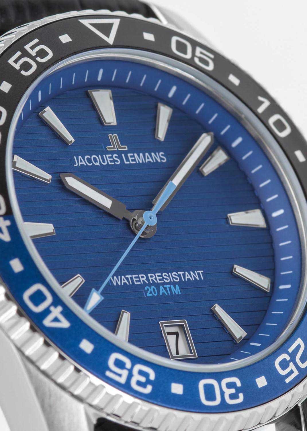 Мужские кварцевые часы Jacques Lemans 1-2205B – лаконичная красота и изысканная элегантность. Оригинальная модель с классическим оформлением станет превосходным завершением образа, наделив его индивидуальным характером. Корпус выполнен из нержавеющей стали серебристого цвета, диаметром 41 мм, что обеспечивает долговечность и утончённый внешний вид. Минеральное стеклоМинеральное стеклоМинеральное стекло представляет собой искусственно выращенный минерал кварца. Такое стекло отличается особой устойчивостью к повреждениям и царапинам. Уступает по некоторым качествам сапфировому стеклу. повышенной прочности Crystex защищает циферблат от царапин. Поворотный безельБезельВнешний ободок, закрепляющий стекло. В спортивных часах так называется поворотное кольцо с делениями на циферблате, выполняет роль таймера – замеряет отрезки времени на шкале. Неподвижный безель – элемент декора. Однонаправленно вращающийся безель на дайверских часах позволяет фиксировать моменты погружения и выныривания на поверхность. с PVD-покрытиемPVDУльтратонкое покрытие наносится в технике вакуумного напыления, сочетает в себе нитрид титана особой прочности со слоем золота или оксида хрома. Несёт в себе декоративную или защитную функцию. синего цвета. Ремешок состоит из двух частей: внутренняя сделана из силикона, внешняя — из натуральной кожи. Классическая застежка с логотипом бренда. Водозащита 200 метров позволит плавать, нырять и заниматься другими водными видами спорта. Стрелки и метки с люминесцентным покрытиемЛюминесцентное покрытиеПозволяет считывать показания времени в темноте. Производители наносят на стрелки, часовые индексы, безель или поверхность циферблата светонакопительный состав, дающий холодное свечение. позволяющие легко определять время даже в темноте. Окошко даты находится в положении 6 часов. Рифленая заводная головка с защитой. Это аксессуар для мужчины, который ценит классический стиль и функциональность.