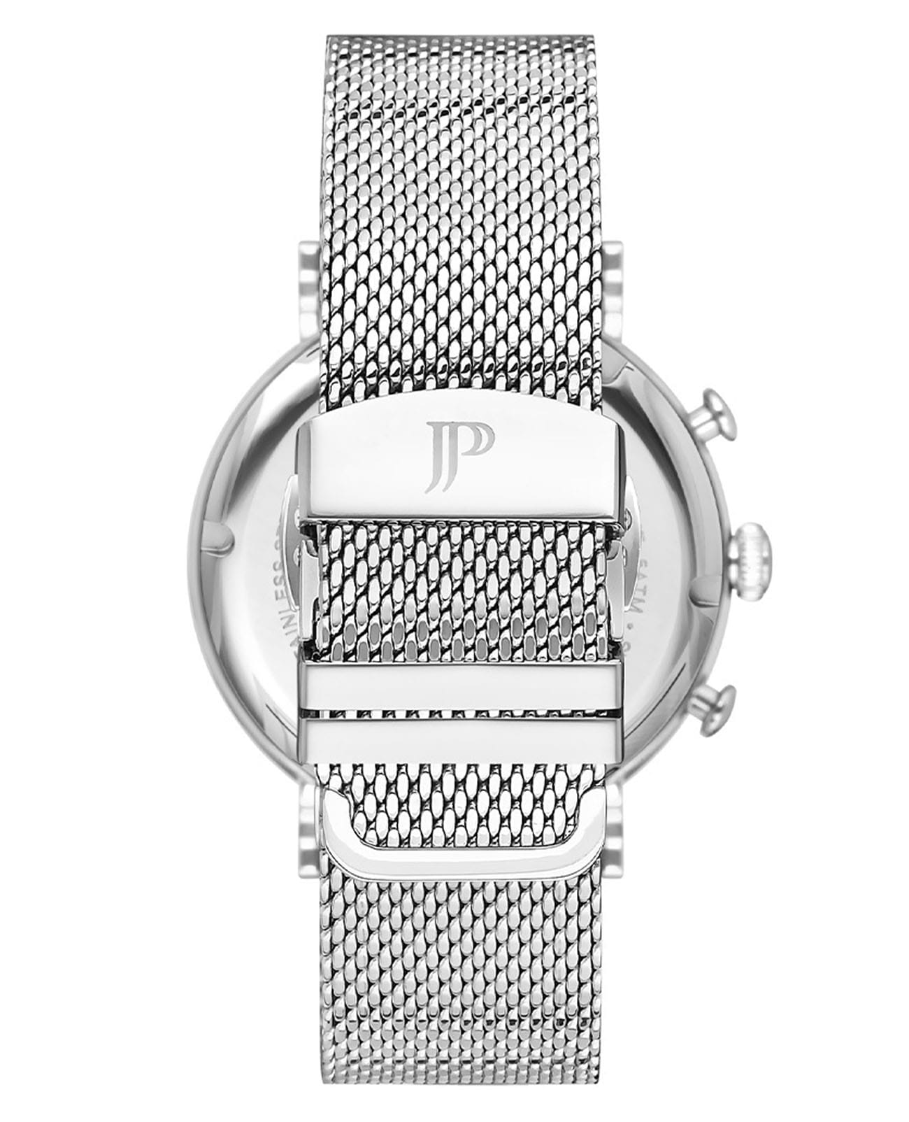 Швейцарские мужские часы-хронографХронографФункция позволяет измерять отрезки времени с особой точностью: часы, минуты, секунды. Верным признаком хронографа является наличие на циферблате 3 дополнительных окошек-счётчиков. Jacques Philippe Aviator JPQGC021216, кварцевый механизм с высокой точностью. Сапфировое стеклоСапфировое стеклоПрочный и надёжный материал из кристалла сапфира синтетического происхождения, характеризующийся особой твёрдостью и устойчивостью к царапинам и повреждениям. устойчивое к появлению царапин, обладающее высокой прозрачностью. Корпус часов изготовлен из нержавеющей стали. На циферблате три дополнительных индикатора. Окошко даты находится в положении 4 часов. Класс водозащиты: 50 метров, позволит защитить корпус от случайных брызг или капель дождя. Стальной браслет миланского плетения на раскладном замкеРаскладной замокДанный вариант застежки используется только на часах с металлическим браслетом. Отличительная особенность такого крепления в том, что длина браслета становится универсальной и вы можете самостоятельно отрегулировать нужный вам размер – застежка просто двигается по браслету часов..