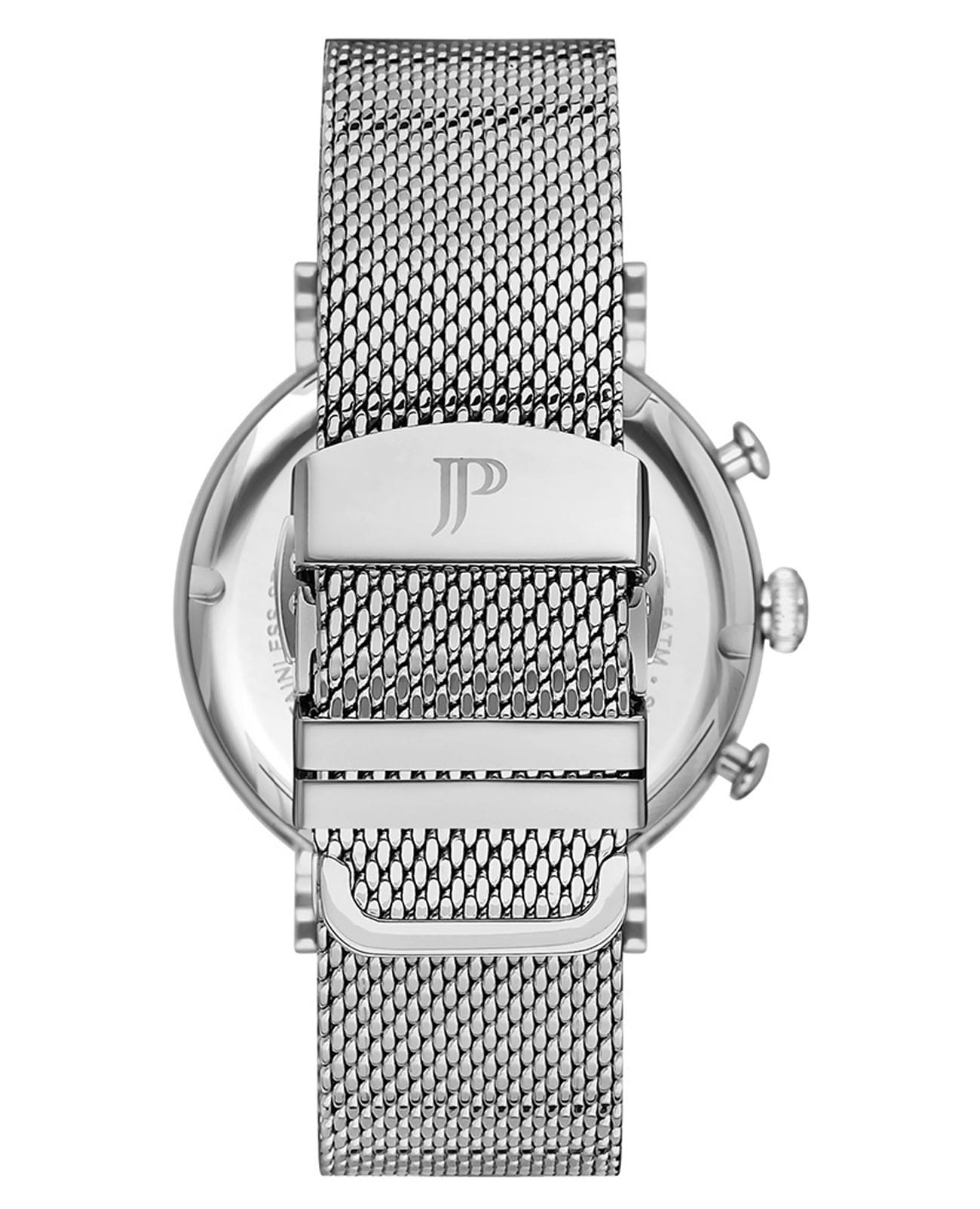 Швейцарские мужские часы-хронографХронографФункция позволяет измерять отрезки времени с особой точностью: часы, минуты, секунды. Верным признаком хронографа является наличие на циферблате 3 дополнительных окошек-счётчиков. Jacques Philippe Aviator JPQGC028237, кварцевый механизм с высокой точностью. Сапфировое стеклоСапфировое стеклоПрочный и надёжный материал из кристалла сапфира синтетического происхождения, характеризующийся особой твёрдостью и устойчивостью к царапинам и повреждениям. устойчивое к появлению царапин, обладающее высокой прозрачностью. Корпус часов изготовлен из нержавеющей стали. На циферблате три дополнительных индикатора. Окошко даты находится в положении 4 часов. Класс водозащиты: 50 метров, позволит защитить корпус от случайных брызг или капель дождя. Стальной браслет миланского плетения на раскладном замкеРаскладной замокДанный вариант застежки используется только на часах с металлическим браслетом. Отличительная особенность такого крепления в том, что длина браслета становится универсальной и вы можете самостоятельно отрегулировать нужный вам размер – застежка просто двигается по браслету часов..