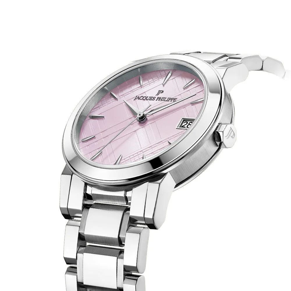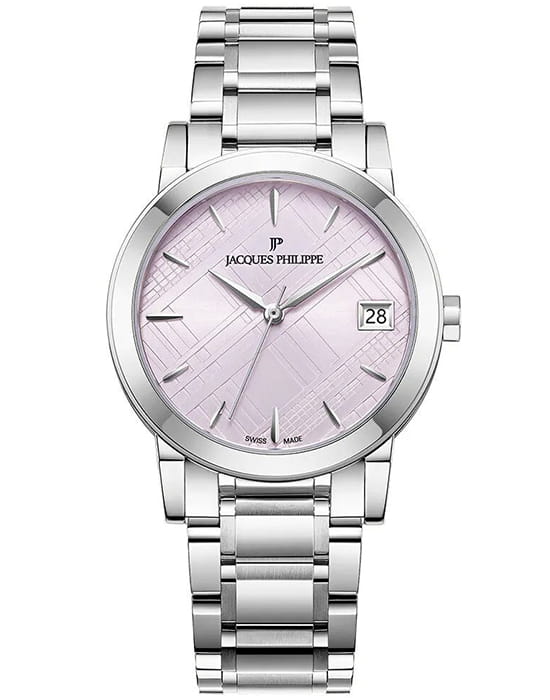 Швейцарские женские часы Jacques Philippe Cosmos JPQLS1613X6PK, кварцевый механизм с высокой точностью. Сапфировое стеклоСапфировое стеклоПрочный и надёжный материал из кристалла сапфира синтетического происхождения, характеризующийся особой твёрдостью и устойчивостью к царапинам и повреждениям. устойчивое к появлению царапин, обладающее высокой прозрачностью. Корпус и браслет часов изготовлены из нержавеющей стали придающей модели элегантный блеск. Класс водозащиты: 50 метров, позволит защитить корпус от случайных брызг или капель дождя. Стальной браслет на застёжке-бабочке с кнопкамиЗастёжка "бабочка"Такой вид застёжки дополняется предохранителями, помогающими избежать случайного раскрытия браслета. Обладают изящным исполнением. обеспечивает надежную фиксацию на кисти. Окошко даты находится в положении 3 часа.