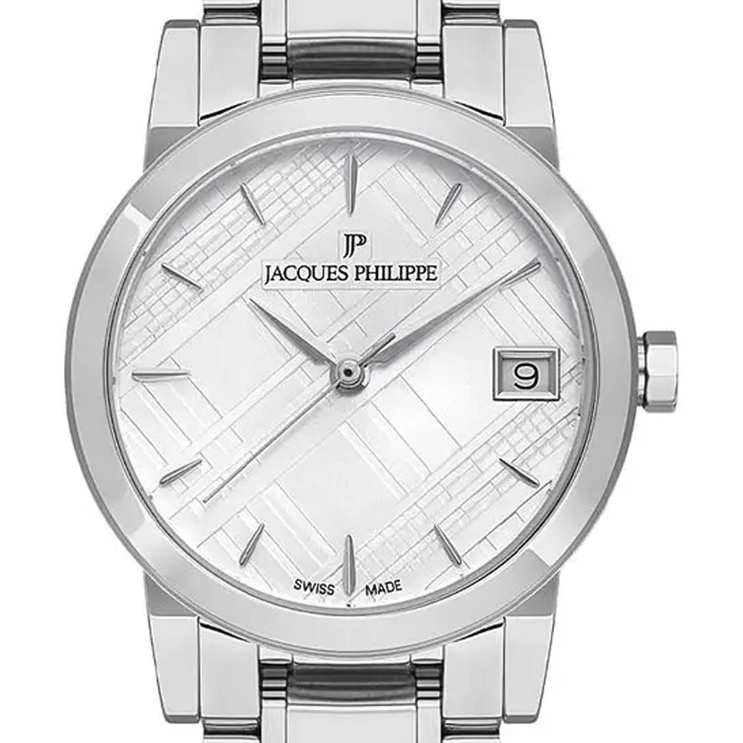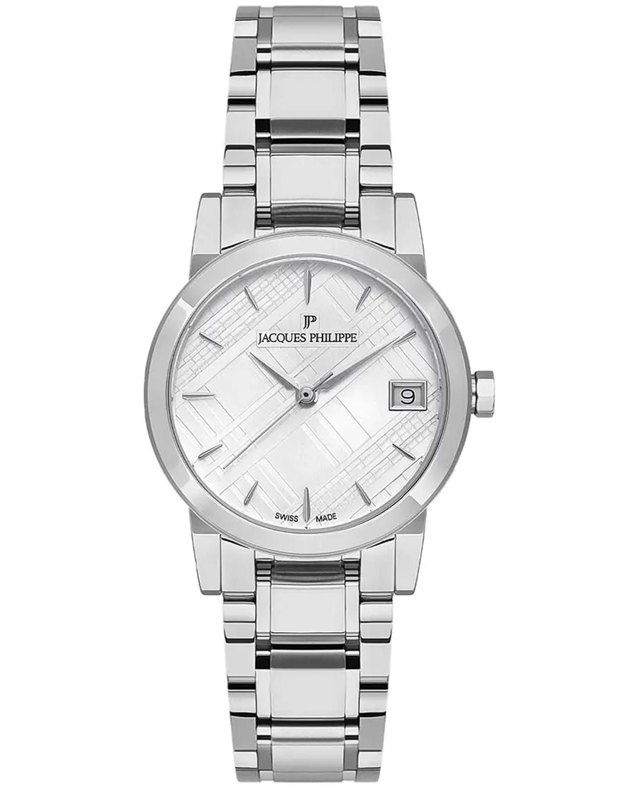Швейцарские женские часы Jacques Philippe Cosmos JPQLS311326, кварцевый механизм с высокой точностью. Сапфировое стеклоСапфировое стеклоПрочный и надёжный материал из кристалла сапфира синтетического происхождения, характеризующийся особой твёрдостью и устойчивостью к царапинам и повреждениям. устойчивое к появлению царапин, обладающее высокой прозрачностью. Корпус часов изготовлен из нержавеющей стали. Окошко даты находится в положении 3 часа. Класс водозащиты: 50 метров, позволит защитить корпус от случайных брызг или капель дождя. Стальной браслет на застёжке «бабочка» с кнопкамиЗастёжка "бабочка"Такой вид застёжки дополняется предохранителями, помогающими избежать случайного раскрытия браслета. Обладают изящным исполнением. .