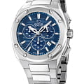 Мужские швейцарские часы-хронографХронографФункция позволяет измерять отрезки времени с особой точностью: часы, минуты, секунды. Верным признаком хронографа является наличие на циферблате 3 дополнительных окошек-счётчиков. Jaguar Executive Chrono J805/B. Кварцевый швейцарский калибр Ronda 5030d. Сапфировое стеклоСапфировое стеклоПрочный и надёжный материал из кристалла сапфира синтетического происхождения, характеризующийся особой твёрдостью и устойчивостью к царапинам и повреждениям. устойчивое к мелким механическим повреждениям. Корпус и браслет часов изготовлены из нержавеющей стали. Стрелки и метки с люминесцентным покрытиемЛюминесцентное покрытиеПозволяет считывать показания времени в темноте. Производители наносят на стрелки, часовые индексы, безель или поверхность циферблата светонакопительный состав, дающий холодное свечение.. Окошко даты находится в положении между «4» и «5 часами». Класс водозащиты: 50 метров, позволит защитить корпус от случайных брызг или капель дождя. Стальной браслет на раскладной застёжкеРаскладная застёжкаТакой тип застёжки используется только на браслетах из металла. Она никогда не раскрывается полностью, происходит разделение на 2 и более частей. Раскладывающая застёжка снизит вероятность потери часов к минимуму..