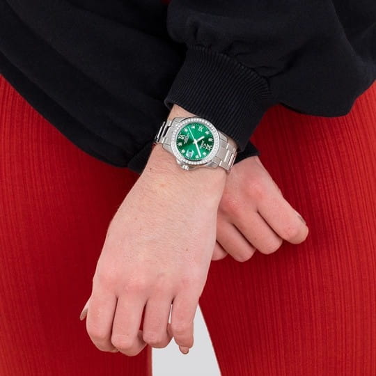Женские швейцарские часы Jaguar Woman J892/5. Кварцевый швейцарский калибр Ronda 705. Сапфировое стеклоСапфировое стеклоПрочный и надёжный материал из кристалла сапфира синтетического происхождения, характеризующийся особой твёрдостью и устойчивостью к царапинам и повреждениям. устойчивое к мелким механическим повреждениям. Корпус и браслет часов изготовлены из нержавеющей стали, с безелем, инкрустированным цирконием. Стрелки с люминесцентным покрытиемЛюминесцентное покрытиеПозволяет считывать показания времени в темноте. Производители наносят на стрелки, часовые индексы, безель или поверхность циферблата светонакопительный состав, дающий холодное свечение.. Окошко даты находится в положении 3 часа. Класс водозащиты: 200 метров, позволит плавать, нырять и заниматься другими водными видами спорта. Стальной браслет на раскладной застёжкеРаскладная застёжкаТакой тип застёжки используется только на браслетах из металла. Она никогда не раскрывается полностью, происходит разделение на 2 и более частей. Раскладывающая застёжка снизит вероятность потери часов к минимуму.. Циферблат украшен кристаллами в роли часовых индексов.