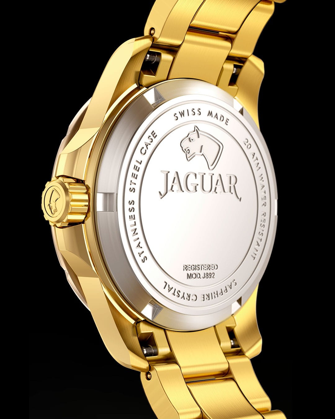 Женские швейцарские часы Jaguar Woman J895/3. Кварцевый швейцарский калибр Ronda 705. Сапфировое стеклоСапфировое стеклоПрочный и надёжный материал из кристалла сапфира синтетического происхождения, характеризующийся особой твёрдостью и устойчивостью к царапинам и повреждениям. устойчивое к мелким механическим повреждениям. Корпус и браслет часов изготовлены из нержавеющей стали с PVD-покрытиемPVDУльтратонкое покрытие наносится в технике вакуумного напыления, сочетает в себе нитрид титана особой прочности со слоем золота или оксида хрома. Несёт в себе декоративную или защитную функцию.. Стрелки с люминесцентным покрытиемЛюминесцентное покрытиеПозволяет считывать показания времени в темноте. Производители наносят на стрелки, часовые индексы, безель или поверхность циферблата светонакопительный состав, дающий холодное свечение.. Окошко даты находится в положении 3 часа. Класс водозащиты: 200 метров, позволит плавать, нырять и заниматься другими водными видами спорта. Стальной браслет с частичным PVD-покрытиемPVDУльтратонкое покрытие наносится в технике вакуумного напыления, сочетает в себе нитрид титана особой прочности со слоем золота или оксида хрома. Несёт в себе декоративную или защитную функцию. на раскладной застёжкеРаскладная застёжкаТакой тип застёжки используется только на браслетах из металла. Она никогда не раскрывается полностью, происходит разделение на 2 и более частей. Раскладывающая застёжка снизит вероятность потери часов к минимуму.. Циферблат украшен кристаллами в роли часовых индексов. БезельБезельВнешний ободок, закрепляющий стекло. В спортивных часах так называется поворотное кольцо с делениями на циферблате, выполняет роль таймера – замеряет отрезки времени на шкале. Неподвижный безель – элемент декора. Однонаправленно вращающийся безель на дайверских часах позволяет фиксировать моменты погружения и выныривания на поверхность. с PVD-покрытиемPVDУльтратонкое покрытие наносится в технике вакуумного напыления, сочетает в себе нитрид титана особой прочности со слоем золота или оксида хрома. Несёт в себе декоративную или защитную функцию. инкрустирован кристаллами.