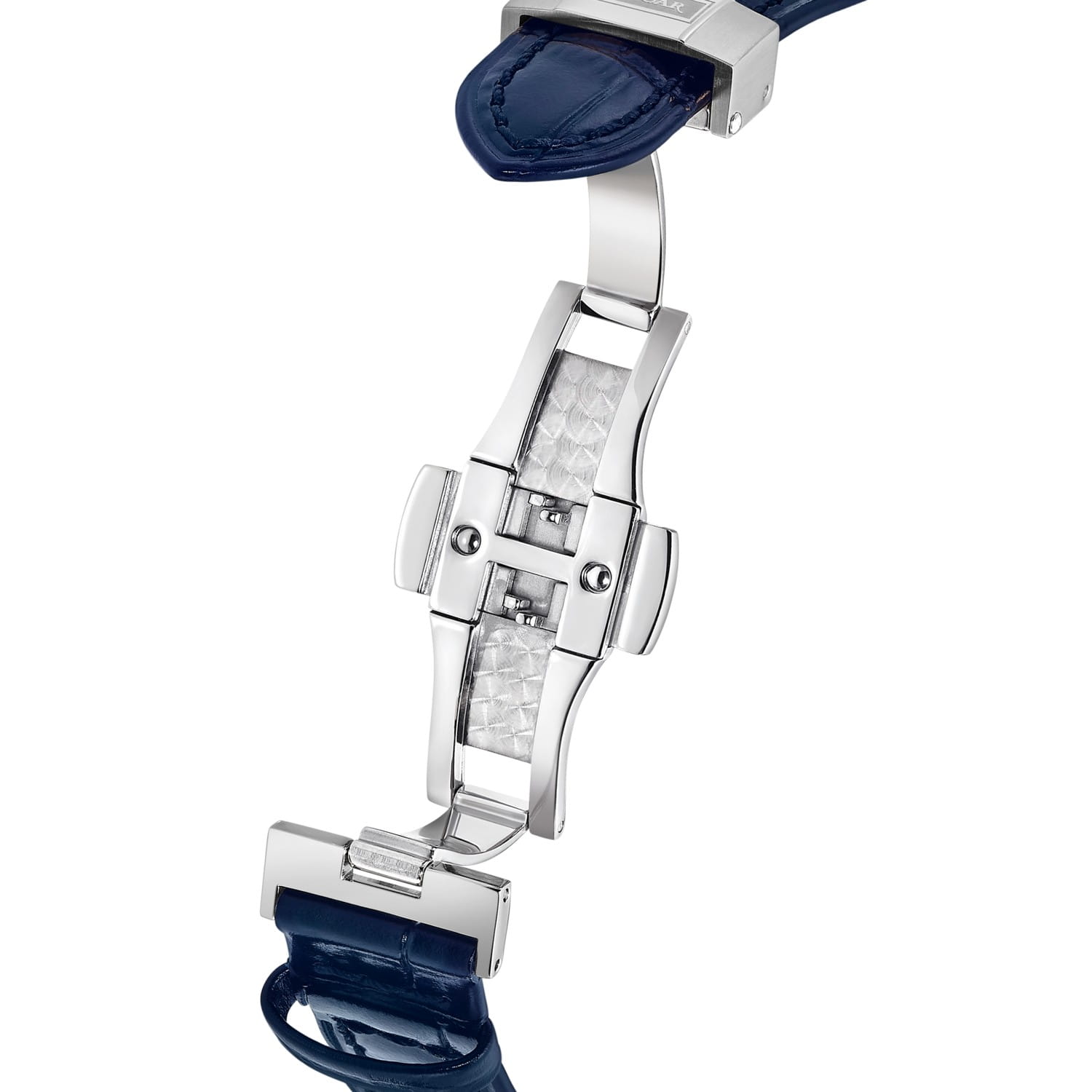 Женские швейцарские часы Jaguar Automatic Open Heart J994/B, механизм — автоподзавод. В часах с автоподзаводом заводная головка практически не используется, что исключает истирание ее материала и материала корпуса. Сапфировое стеклоСапфировое стеклоПрочный и надёжный материал из кристалла сапфира синтетического происхождения, характеризующийся особой твёрдостью и устойчивостью к царапинам и повреждениям. устойчивое к мелким механическим повреждениям. Корпус и браслет часов изготовлены из нержавеющей стали. Класс водозащиты: 50 метров, позволит защитить корпус от случайных брызг или капель дождя. Циферблат украшен кристаллами в роли часовых индексов, крупная апертура в виде сердца, открывающая обзор на балансовое колесо механизма. Кожаный ремешок на застёжке «бабочке» с кнопкамиЗастёжка "бабочка"Такой вид застёжки дополняется предохранителями, помогающими избежать случайного раскрытия браслета. Обладают изящным исполнением. .