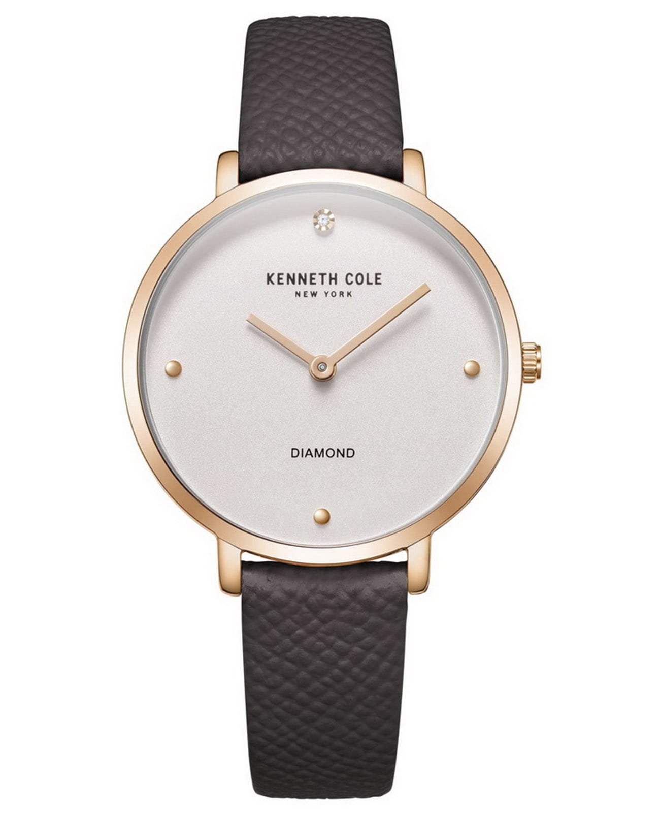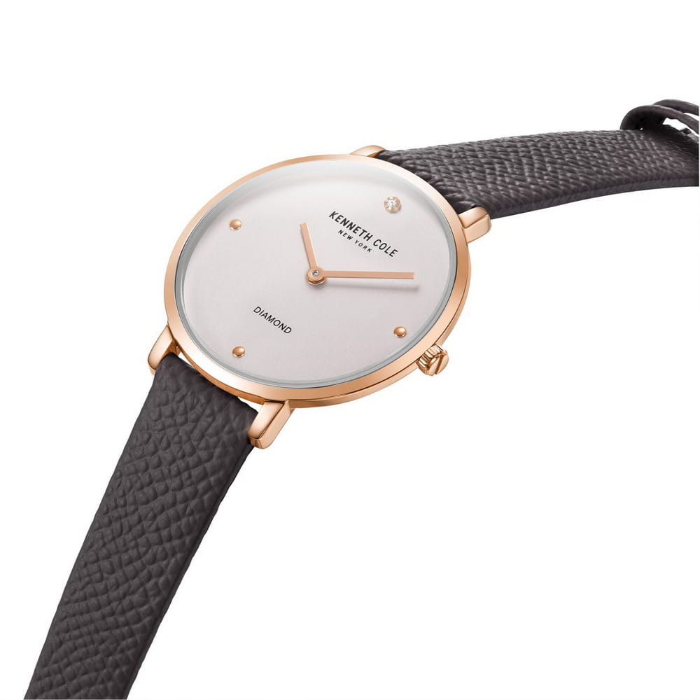 Женские кварцевые часы с минеральным стекломМинеральное стеклоМинеральное стекло представляет собой искусственно выращенный минерал кварца. Такое стекло отличается особой устойчивостью к повреждениям и царапинам. Уступает по некоторым качествам сапфировому стеклу. Kenneth Cole Classic KCWLA2220002, кварцевый механизм с высокой точностью. Класс водозащиты: 30 метров, позволит защитить корпус от случайных брызг или капель дождя. Корпус изготовлен из нержавеющей стали с PVD-покрытиемPVDУльтратонкое покрытие наносится в технике вакуумного напыления, сочетает в себе нитрид титана особой прочности со слоем золота или оксида хрома. Несёт в себе декоративную или защитную функцию.. Серебристый циферблат украшен бриллиантом. Кожаный ремешок на стандартной застёжке.