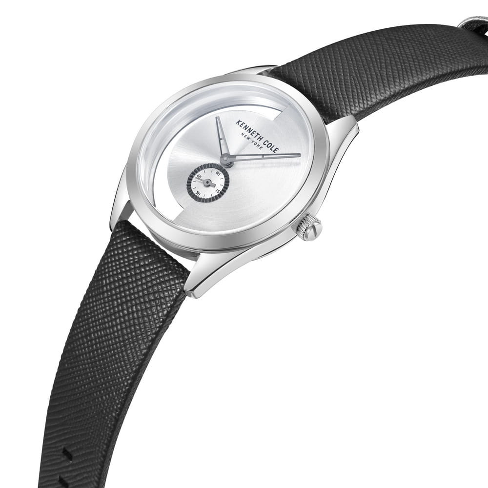 Женские кварцевые часы с минеральным стекломМинеральное стеклоМинеральное стекло представляет собой искусственно выращенный минерал кварца. Такое стекло отличается особой устойчивостью к повреждениям и царапинам. Уступает по некоторым качествам сапфировому стеклу. Kenneth Cole Classic KCWLA2223103, кварцевый механизм с высокой точностью. Класс водозащиты: 30 метров, позволит защитить корпус от случайных брызг или капель дождя. Корпус часов изготовлен из стали. Кожаный ремешок на стандартной застёжке. Центральные часовая и минутная стрелки, секундная стрелка вынесена на малый циферблат.