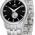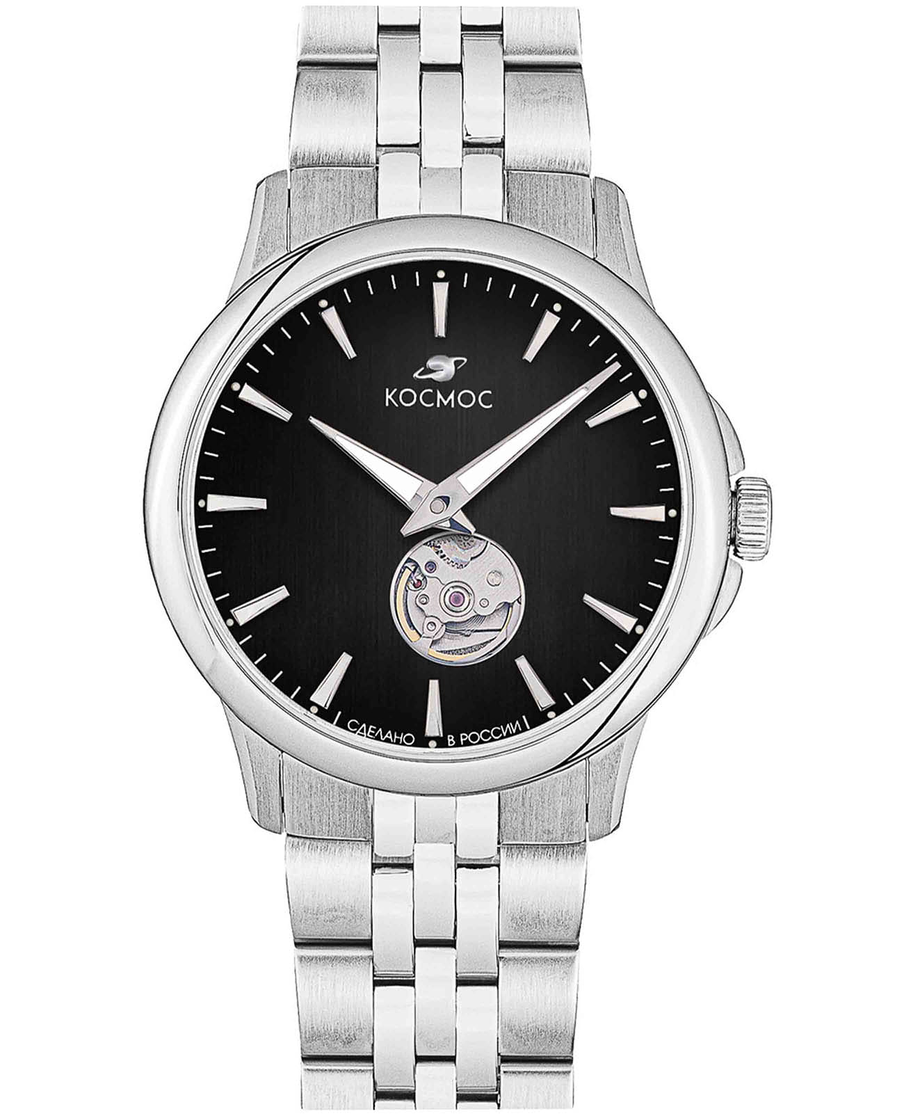 Мужские наручные часы Космос Телескоп K 304.10.31 — это уникальная лимитированная серия под названием Телескоп, посвящена аппарату приоткрывающего взгляду бескрайние дали космического пространства. Апертура открытого баланса модели по форме напоминает круглую линзу телескопа. Сквозь это окошко, расположенное на черном циферблате, также можно увидеть много интересного: ту самую систему «баланс-спираль» автоматического механизма, которая отвечает за точность хода. Корпус часов выполнен из нержавеющей стали, классической круглой формы и достаточно тонкий для механических моделей. Это стало возможным благодаря использованию механизма Miyota, калибр 9029, с высотой всего 3.9 мм. Циферблат декорирован вертикальной текстурой в ретро-стиле, по которой движутся крупные часовая и минутная стрелки, имеющие люминесцентное покрытиеЛюминесцентное покрытиеПозволяет считывать показания времени в темноте. Производители наносят на стрелки, часовые индексы, безель или поверхность циферблата светонакопительный состав, дающий холодное свечение., позволяющее определять время даже в темноте. Циферблат защищен прочным сапфировым стеклом с антибликовым покрытиемСапфировое стеклоПрочный и надёжный материал из кристалла сапфира синтетического происхождения, характеризующийся особой твёрдостью и устойчивостью к царапинам и повреждениям., обеспечивающим отличную читаемость показаний в любых условиях. Прозрачная задняя крышка, закрепленная на четырех винтах, демонстрирует механизм и содержит выгравированный индивидуальный номер экземпляра хх/50, отражающий лимитированный тираж всего в 50 штук. Браслет изготовлен из нержавеющей стали и оснащен удобной застёжкой «бабочка» с кнопкамиЗастёжка "бабочка"Такой вид застёжки дополняется предохранителями, помогающими избежать случайного раскрытия браслета. Обладают изящным исполнением. , которая сводит к минимуму вероятность потери. Модель Телескоп сочетает классический дизайн и универсальность, прекрасно подходя как к деловому костюму, так и к более повседневным образам.
