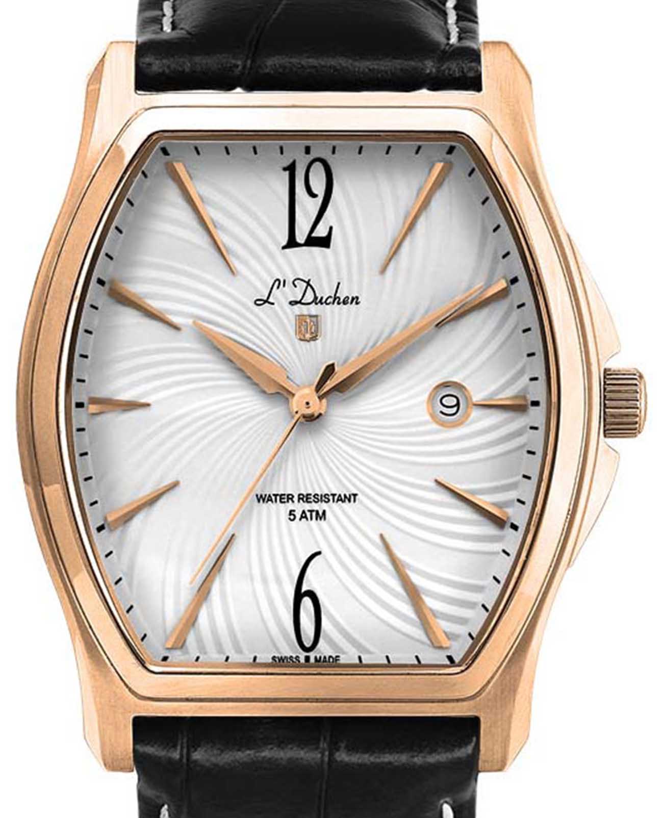 Мужские швейцарские L'Duchen Muse D 301.41.23, кварцевый механизм с высокой точностью. Сапфировое стеклоСапфировое стеклоПрочный и надёжный материал из кристалла сапфира синтетического происхождения, характеризующийся особой твёрдостью и устойчивостью к царапинам и повреждениям. устойчивое к появлению царапин, обладающее высокой прозрачностью. Корпус часов выполнен из нержавеющей стали с PVD-покрытиемPVDУльтратонкое покрытие наносится в технике вакуумного напыления, сочетает в себе нитрид титана особой прочности со слоем золота или оксида хрома. Несёт в себе декоративную или защитную функцию.. Класс водозащиты: 50 метров, позволит защитить корпус от случайных брызг или капель дождя. Кожаный ремешок на застёжке «бабочка» с кнопкамиЗастёжка "бабочка"Такой вид застёжки дополняется предохранителями, помогающими избежать случайного раскрытия браслета. Обладают изящным исполнением. .