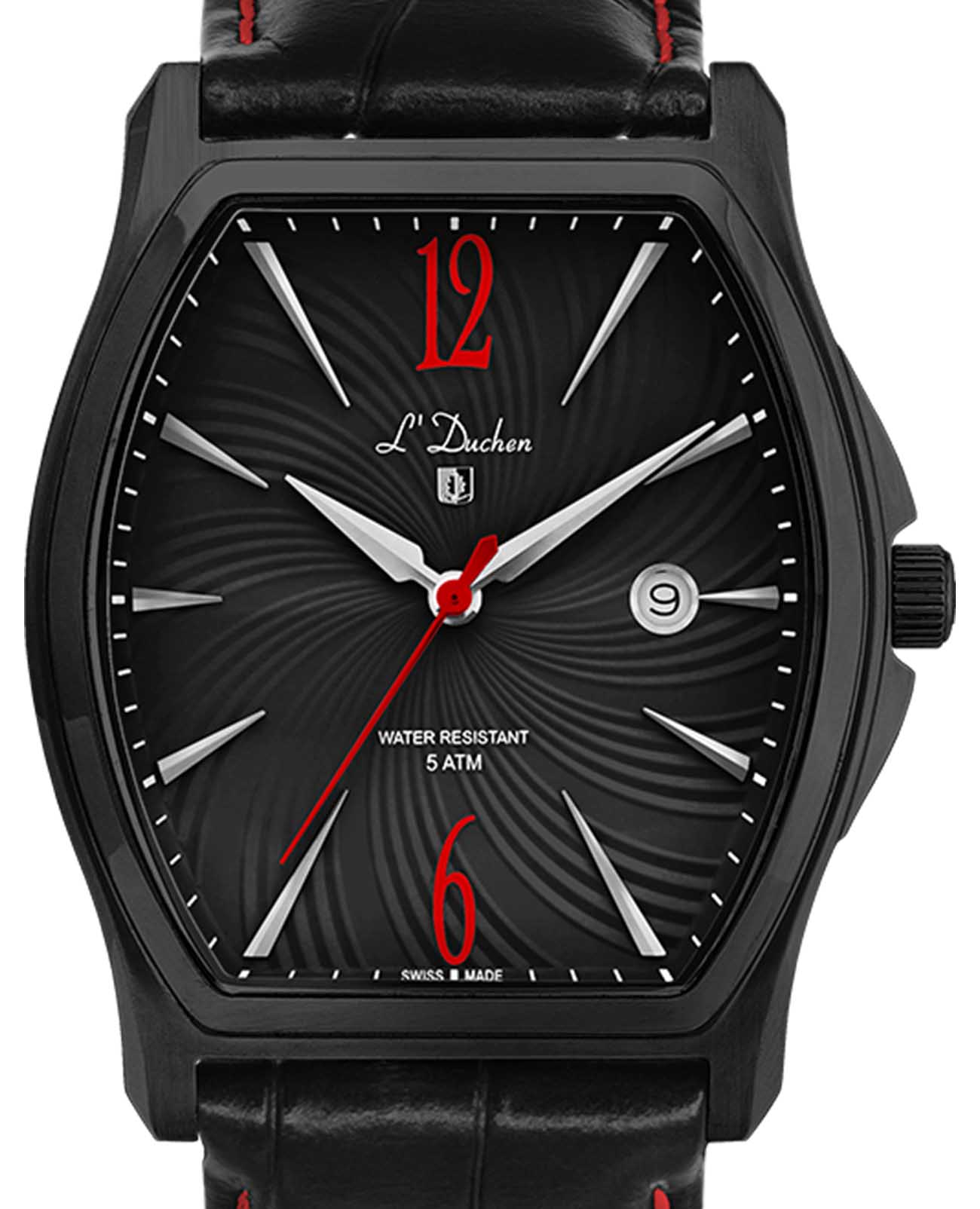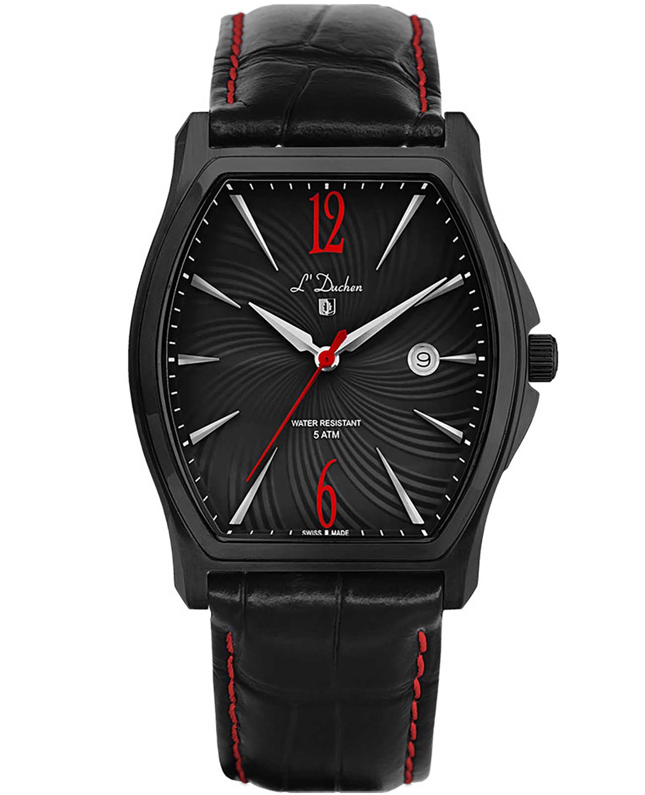 Мужские швейцарские L'Duchen Muse D 301.71.25, кварцевый механизм с высокой точностью. Сапфировое стеклоСапфировое стеклоПрочный и надёжный материал из кристалла сапфира синтетического происхождения, характеризующийся особой твёрдостью и устойчивостью к царапинам и повреждениям. устойчивое к появлению царапин, обладающее высокой прозрачностью. Корпус часов выполнен из нержавеющей стали с PVD-покрытиемPVDУльтратонкое покрытие наносится в технике вакуумного напыления, сочетает в себе нитрид титана особой прочности со слоем золота или оксида хрома. Несёт в себе декоративную или защитную функцию.. Класс водозащиты: 50 метров, позволит защитить корпус от случайных брызг или капель дождя. Кожаный ремешок на застёжке «бабочка» с кнопкамиЗастёжка "бабочка"Такой вид застёжки дополняется предохранителями, помогающими избежать случайного раскрытия браслета. Обладают изящным исполнением. .
