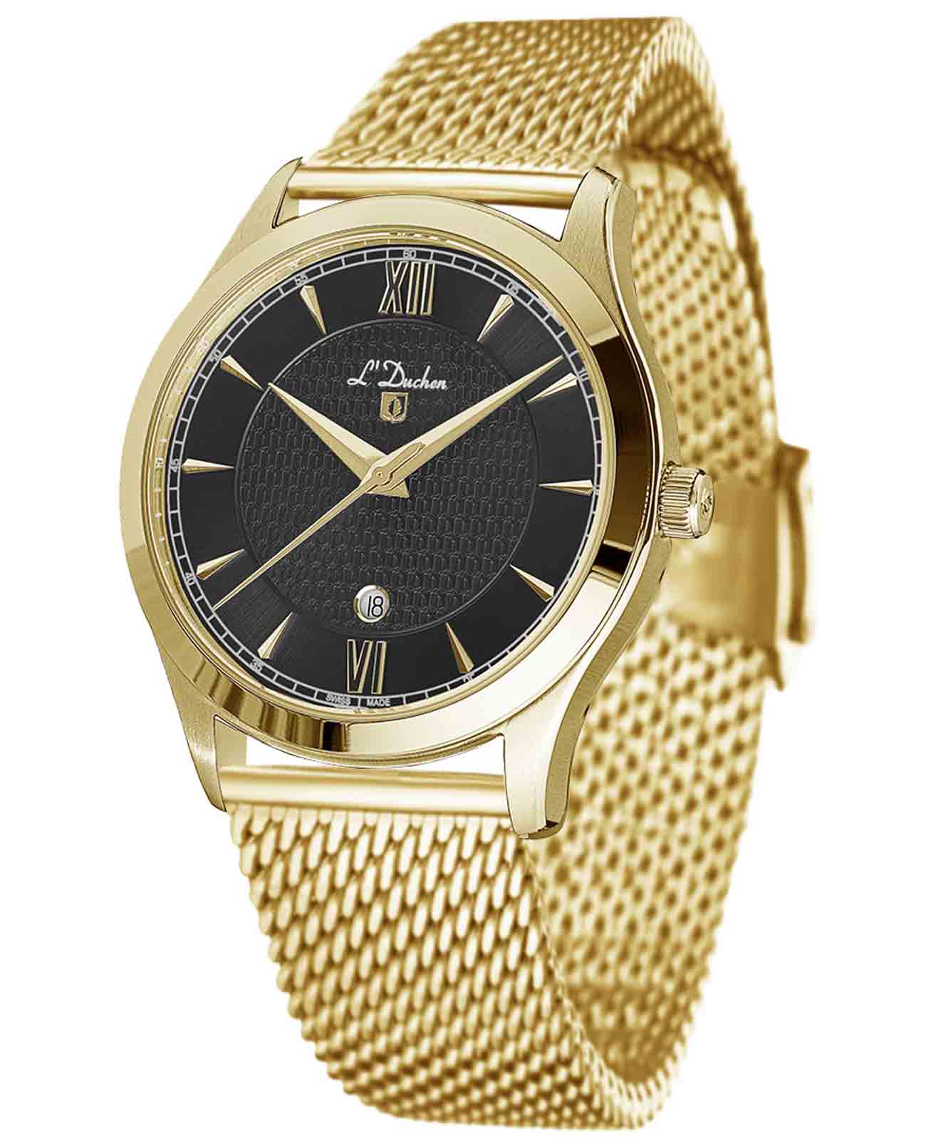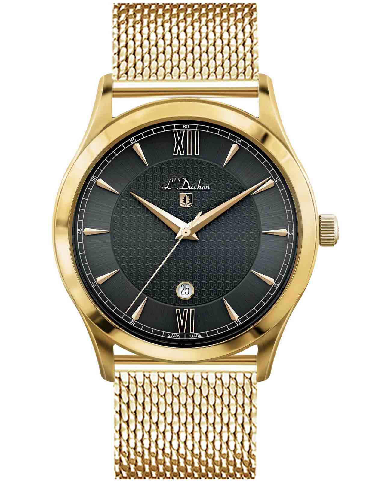 Мужские швейцарские часы L'Duchen Carcassonne D 761.21.11 M, кварцевый механизм с высокой точностью. Сапфировое стеклоСапфировое стеклоПрочный и надёжный материал из кристалла сапфира синтетического происхождения, характеризующийся особой твёрдостью и устойчивостью к царапинам и повреждениям. устойчивое к появлению царапин, обладающее высокой прозрачностью. Корпус часов выполнен из нержавеющей стали с PVD-покрытиемPVDУльтратонкое покрытие наносится в технике вакуумного напыления, сочетает в себе нитрид титана особой прочности со слоем золота или оксида хрома. Несёт в себе декоративную или защитную функцию.. Класс водозащиты: 50 метров, позволит защитить корпус от случайных брызг или капель дождя. Стальной браслет с PVD-покрытиемPVDУльтратонкое покрытие наносится в технике вакуумного напыления, сочетает в себе нитрид титана особой прочности со слоем золота или оксида хрома. Несёт в себе декоративную или защитную функцию. на застёжке «бабочка» с кнопкамиЗастёжка "бабочка"Такой вид застёжки дополняется предохранителями, помогающими избежать случайного раскрытия браслета. Обладают изящным исполнением. .