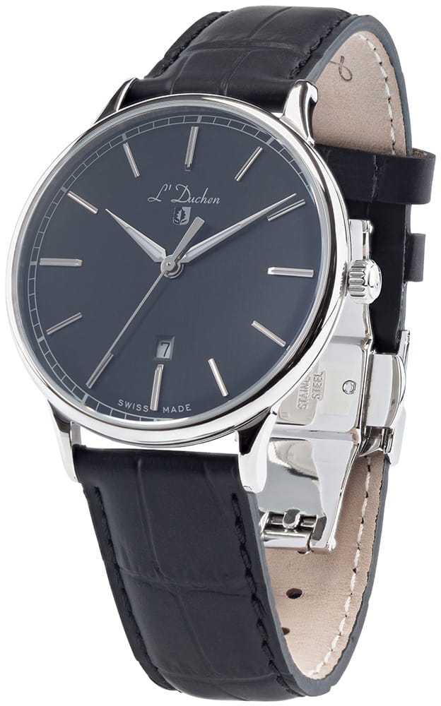 Мужские швейцарские часы L'Duchen Vintage D 821.11.31, кварцевый механизм с высокой точностью. Сапфировое стеклоСапфировое стеклоПрочный и надёжный материал из кристалла сапфира синтетического происхождения, характеризующийся особой твёрдостью и устойчивостью к царапинам и повреждениям. устойчивое к появлению царапин, обладающее высокой прозрачностью. Корпус часов выполнен из нержавеющей стали. Стрелки с люминесцентным покрытиемЛюминесцентное покрытиеПозволяет считывать показания времени в темноте. Производители наносят на стрелки, часовые индексы, безель или поверхность циферблата светонакопительный состав, дающий холодное свечение.. Окошко даты находится в положении 6 часов. Класс водозащиты: 50 метров, позволит защитить корпус от случайных брызг или капель дождя. Кожаный ремешок на застёжке «бабочка» с кнопкамиЗастёжка "бабочка"Такой вид застёжки дополняется предохранителями, помогающими избежать случайного раскрытия браслета. Обладают изящным исполнением. .