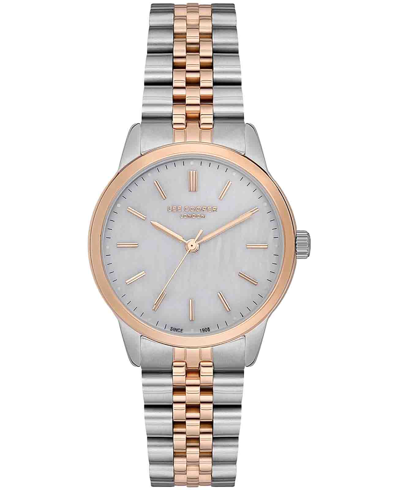 Женские наручные часы Lee Cooper LC07144.520 — это элегантная модель с утончённым дизайном. Корпус диаметром 33 мм выполнен из суперметалла, что придаёт часам изысканный вид. Перламутровый циферблат украшен изящными метками и стрелками, обеспечивая удобное считывание времени. Циферблат защищён минеральным стекломМинеральное стеклоМинеральное стекло представляет собой искусственно выращенный минерал кварца. Такое стекло отличается особой устойчивостью к повреждениям и царапинам. Уступает по некоторым качествам сапфировому стеклу., устойчивым к царапинам. Часы работают на кварцевом механизме, обеспечивая точность хода. Браслет из нержавеющей стали с раскладной застёжкойРаскладная застёжкаТакой тип застёжки используется только на браслетах из металла. Она никогда не раскрывается полностью, происходит разделение на 2 и более частей. Раскладывающая застёжка снизит вероятность потери часов к минимуму. гарантирует комфортное ношение и надёжную фиксацию на запястье. БезельБезельВнешний ободок, закрепляющий стекло. В спортивных часах так называется поворотное кольцо с делениями на циферблате, выполняет роль таймера – замеряет отрезки времени на шкале. Неподвижный безель – элемент декора. Однонаправленно вращающийся безель на дайверских часах позволяет фиксировать моменты погружения и выныривания на поверхность. с IP-покрытиемIP-покрытиеМетод ионного напыления. Демонстрирует повышенную устойчивость к истиранию, окислению и химическим веществам. Под воздействием высокого давления и температуры около 1500°C молекулы металла надёжно соединяются с частицами корпуса часов.. Водозащита 30 метров защищает часы от случайных брызг и дождя, делая их подходящими для повседневного использования.