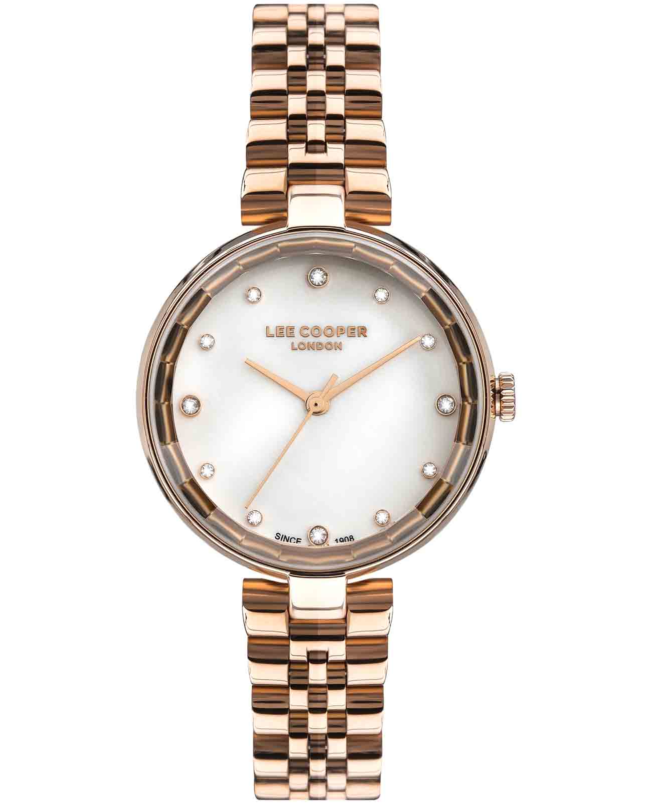 Женские наручные часы Lee Cooper LC07245.420 — это элегантная модель с утончённым дизайном. Корпус диаметром 33 мм выполнен из суперметалла с IP-покрытиемIP-покрытиеМетод ионного напыления. Демонстрирует повышенную устойчивость к истиранию, окислению и химическим веществам. Под воздействием высокого давления и температуры около 1500°C молекулы металла надёжно соединяются с частицами корпуса часов., что придаёт часам изысканный вид. Перламутровый циферблат украшен изящными вставками из циркония и стрелками, обеспечивая удобное считывание времени. Циферблат защищён минеральным стекломМинеральное стеклоМинеральное стекло представляет собой искусственно выращенный минерал кварца. Такое стекло отличается особой устойчивостью к повреждениям и царапинам. Уступает по некоторым качествам сапфировому стеклу., устойчивым к царапинам. Часы работают на кварцевом механизме, обеспечивая точность хода. Браслет из нержавеющей стали с раскладной застёжкойРаскладная застёжкаТакой тип застёжки используется только на браслетах из металла. Она никогда не раскрывается полностью, происходит разделение на 2 и более частей. Раскладывающая застёжка снизит вероятность потери часов к минимуму. гарантирует комфортное ношение и надёжную фиксацию на запястье. Водозащита 30 метров защищает часы от случайных брызг и дождя, делая их подходящими для повседневного использования.