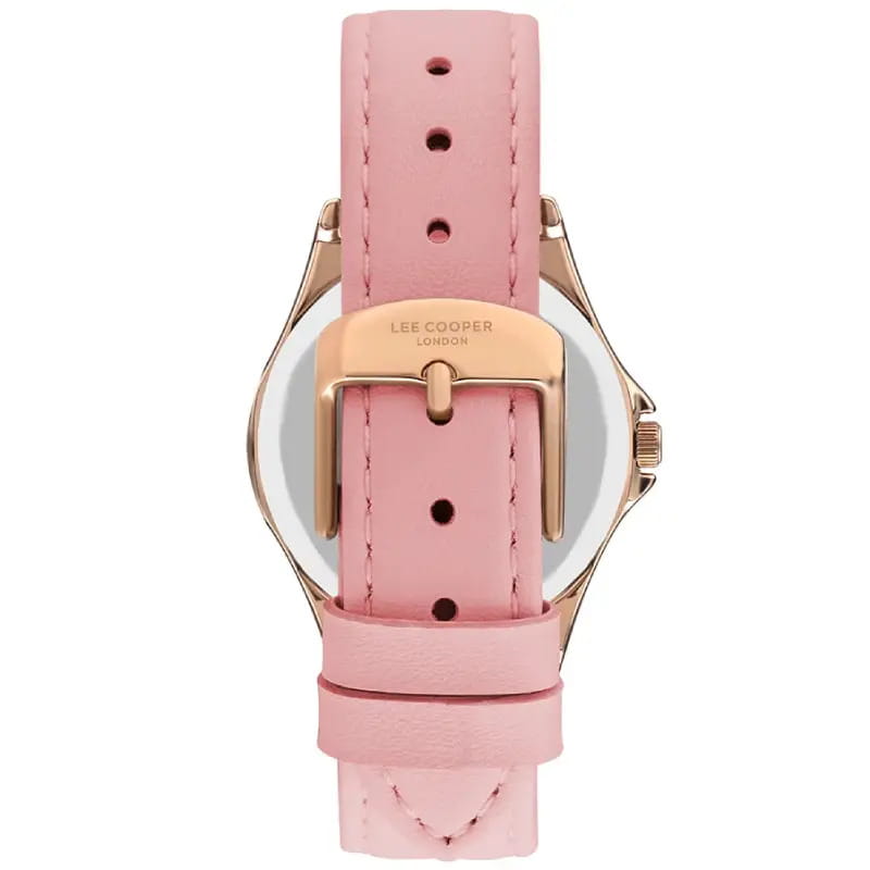Женские наручные часы Lee Cooper LC07347.438 — это элегантная модель с утончённым дизайном. Корпус диаметром 35 мм выполнен из суперметалла с IP-покрытиемIP-покрытиеМетод ионного напыления. Демонстрирует повышенную устойчивость к истиранию, окислению и химическим веществам. Под воздействием высокого давления и температуры около 1500°C молекулы металла надёжно соединяются с частицами корпуса часов., что придаёт часам изысканный вид. Серебристый циферблат украшен изящными метками и стрелками, обеспечивая удобное считывание времени. Циферблат защищён минеральным стекломМинеральное стеклоМинеральное стекло представляет собой искусственно выращенный минерал кварца. Такое стекло отличается особой устойчивостью к повреждениям и царапинам. Уступает по некоторым качествам сапфировому стеклу., устойчивым к царапинам. Часы работают на кварцевом механизме, обеспечивая точность хода. Кожаный ремешок на стандартной застёжке гарантирует комфортное ношение и надёжную фиксацию на запястье. Водозащита 30 метров защищает часы от случайных брызг и дождя, делая их подходящими для повседневного использования. Стрелки покрыты люминесцентным покрытиемЛюминесцентное покрытиеПозволяет считывать показания времени в темноте. Производители наносят на стрелки, часовые индексы, безель или поверхность циферблата светонакопительный состав, дающий холодное свечение., обеспечивая удобное считывание показаний в условиях недостаточного освещения.
